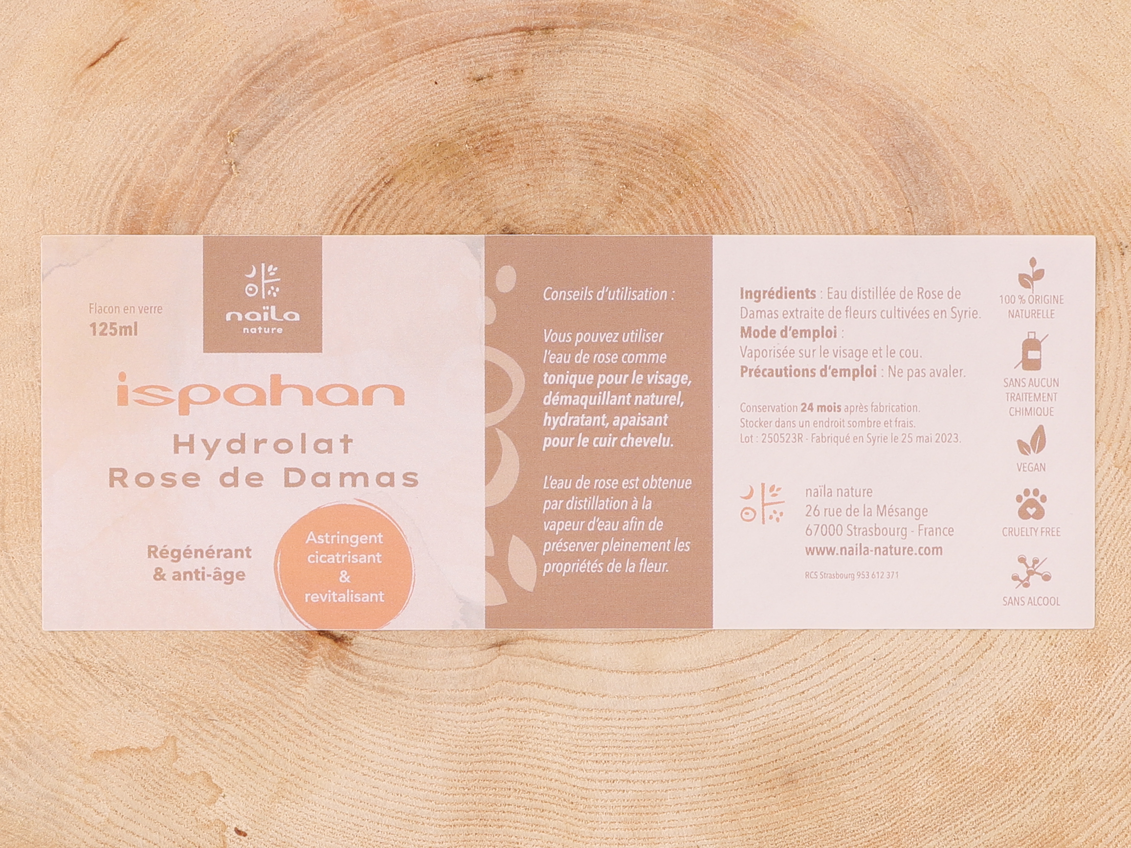 La rose de Damas est considérée comme la plus ancienne fleur connue de l’humanité. Son eau de rose est renommée pour ses nombreuses vertus en matière de soins de beauté. Astringente, anti-inflammatoire, antioxydante, anti-âge, régénérante et hydratante, cet hydrolat réveillera le teint, lui apportera de l’éclat, purifiera et tonifiera la peau, tout en apaisant les peaux irritées et réactives. Ce produit est un essentiel, tant pour les peaux jeunes que pour les peaux matures, qu’il revitalise en profondeur.