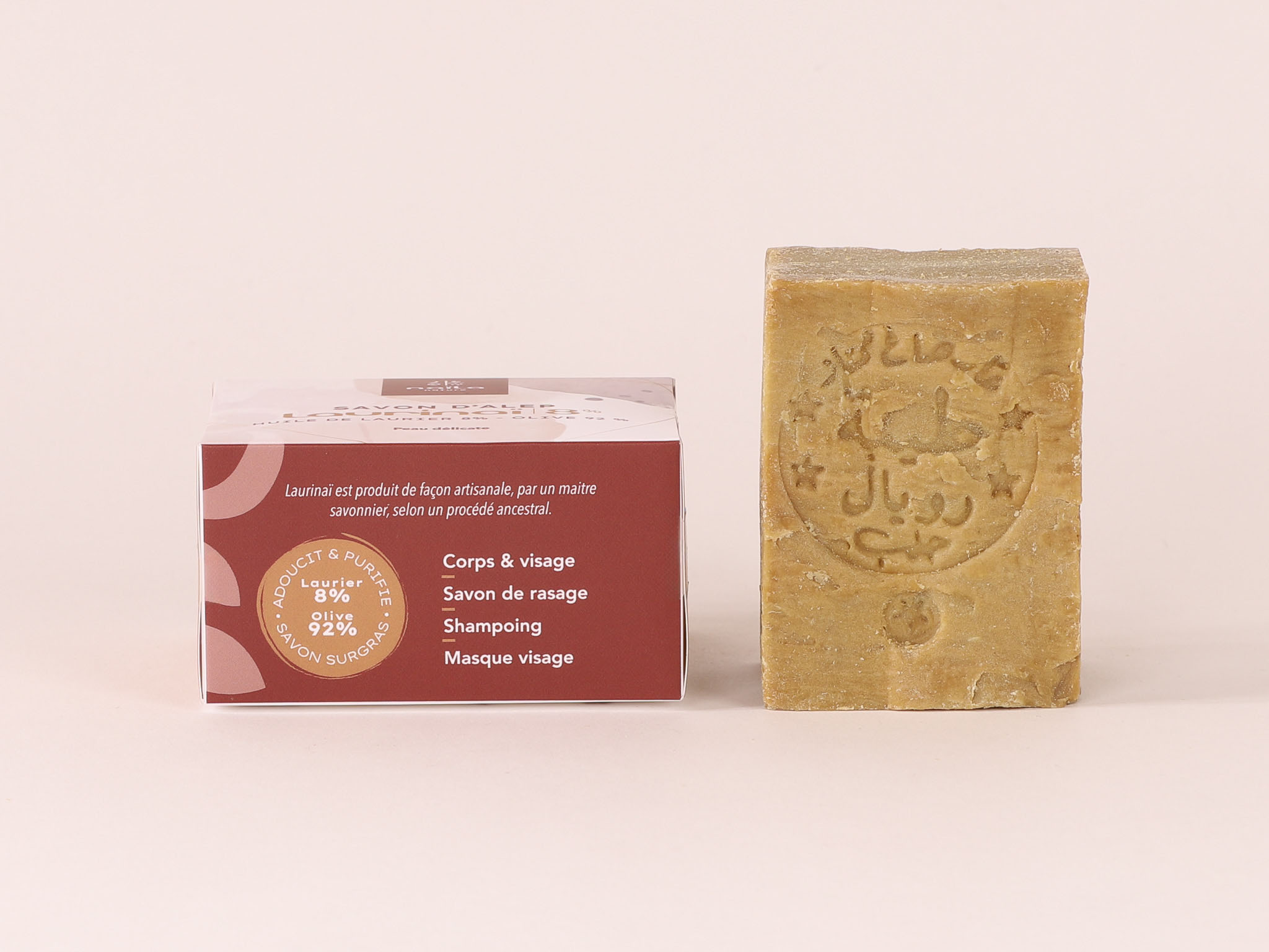Élaboré en respectant des traditions séculaires remontant à plusieurs millénaires, ce savon d’Alep authentique est formulé avec un dosage particulier d’huile d’olive et d’huile de baie de laurier (8%). Ce savant dosage lui confère des vertus nourrissantes grâce à l’huile d’olive et purifiantes grâce à l’huile de baies de laurier. Il est adapté à une utilisation sur le corps et le visage, et sa composition unique en fait un soin régénérant idéal pour les peaux sensibles.