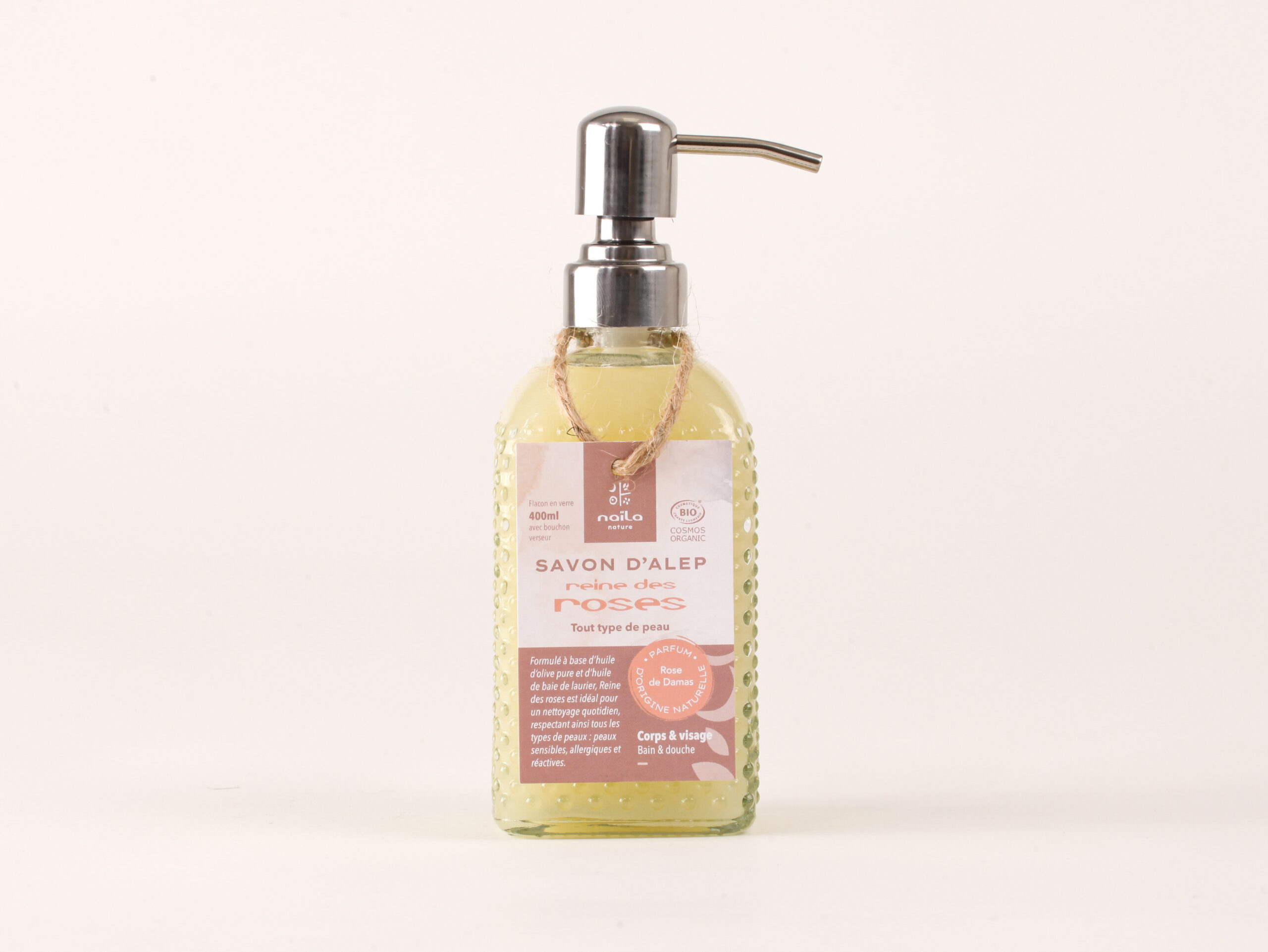 Savon d’Alep liquide rose de Damas “Reine des roses” certifié BIO