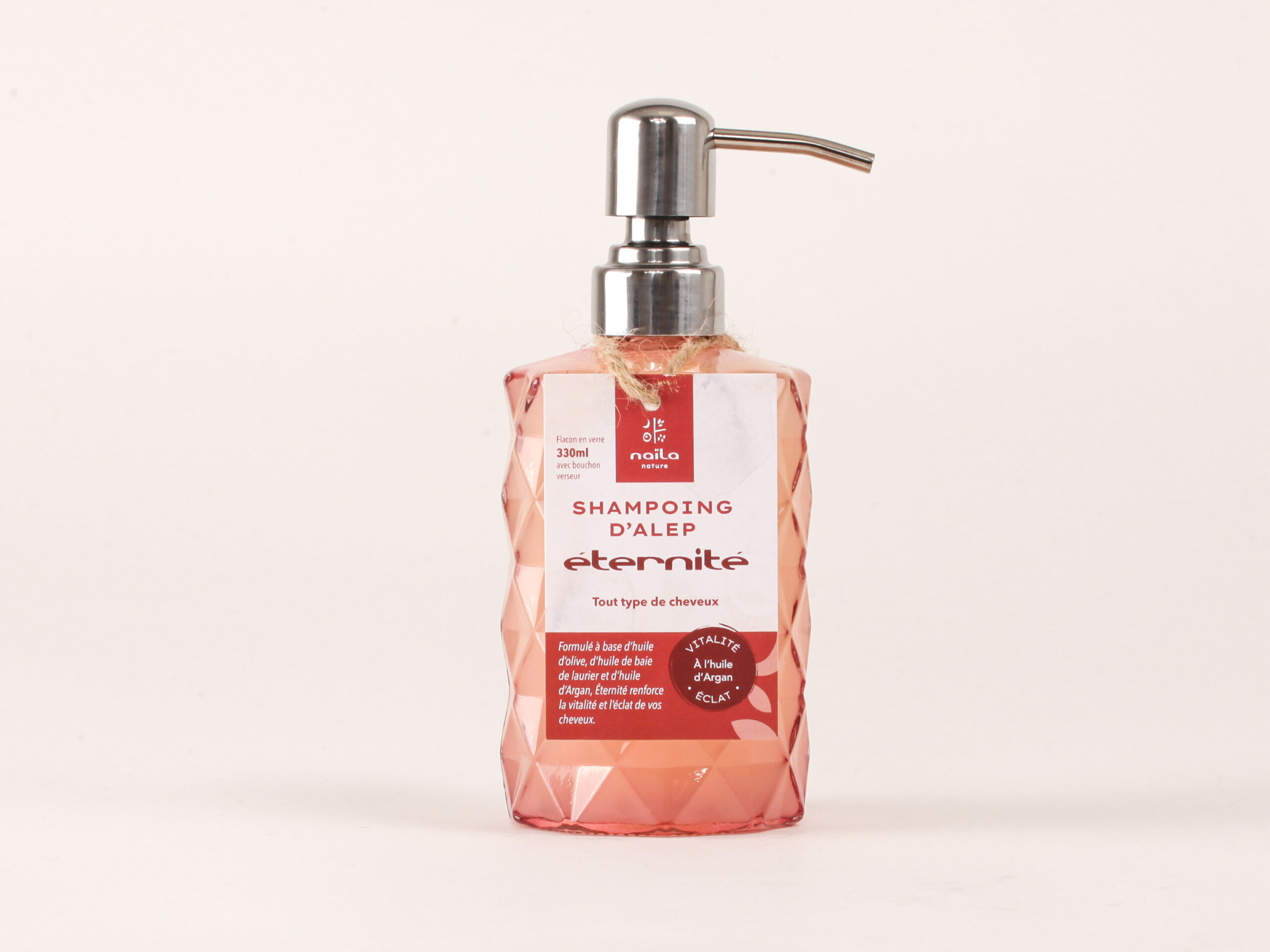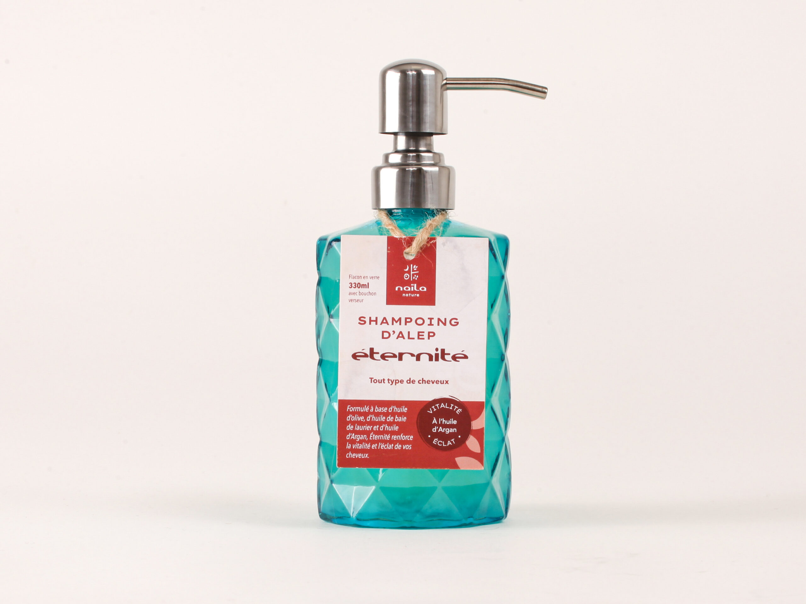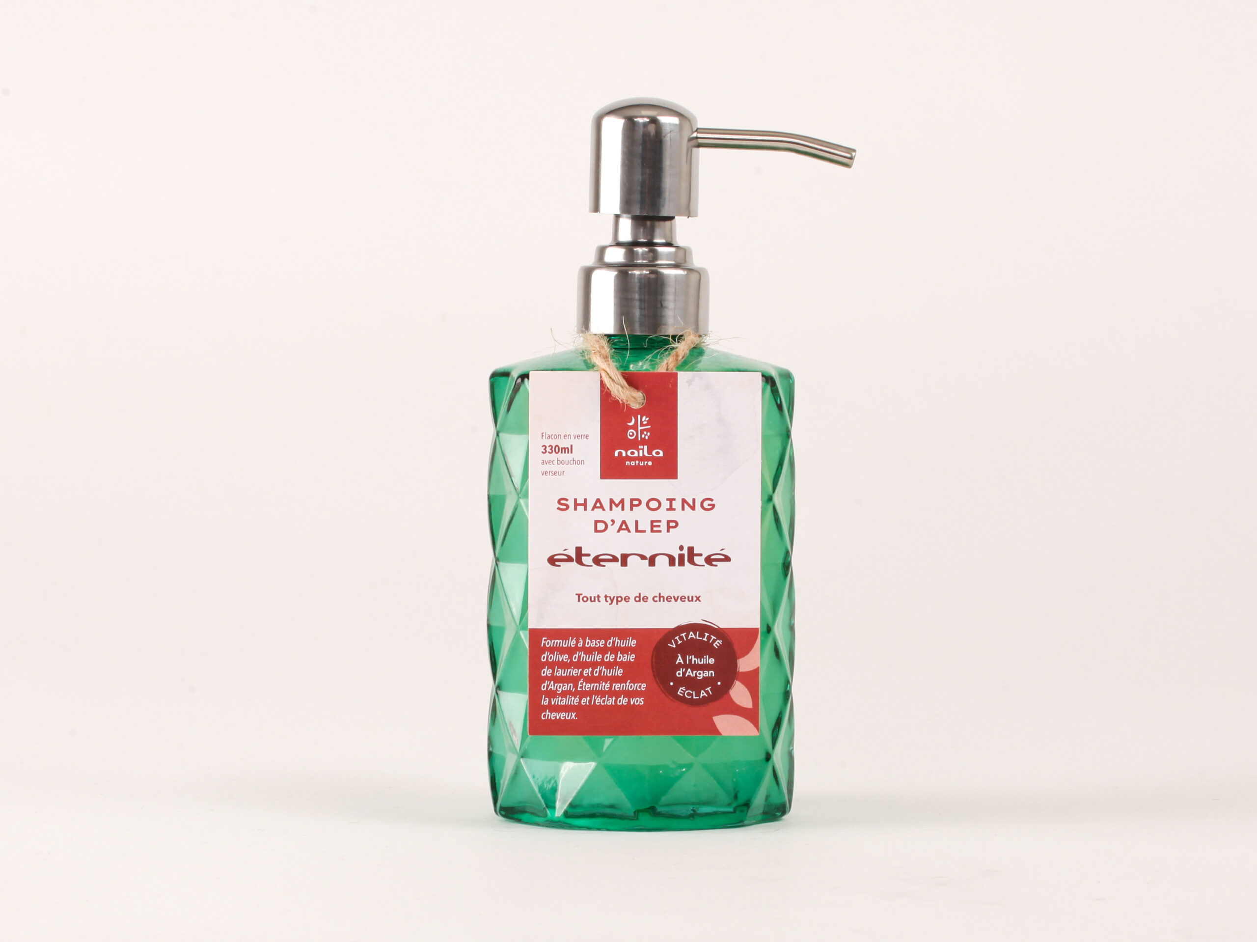 Le shampoing au savon d’Alep “Éternité”, conçu avec de l’huile d’argan pure, de l’huile d’olive et de l’huile de baie de laurier, offre vitalité, force et brillance à vos cheveux. Ce véritable secret de beauté des femmes se transmet de génération en génération. Ce produit est disponible également en format de 500 ml.