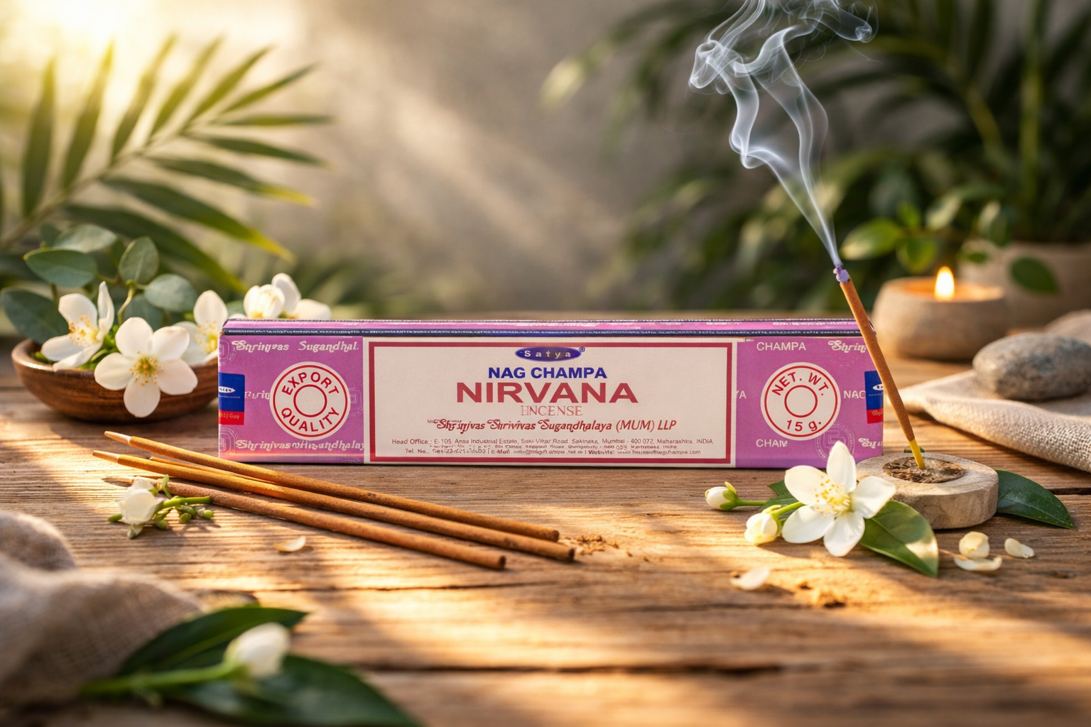 Délicatement parfumé aux notes boisées, douces et subtilement épicées, l’encens Satya Nirvana diffuse une fragrance harmonieuse qui enveloppe l’espace d’une atmosphère calme et équilibrée. Son arôme apaisant favorise le relâchement des tensions et crée un environnement propice à la méditation et à l’introspection. Idéal pour accompagner les rituels de recentrage, les moments de relaxation ou les instants de silence intérieur, il aide à instaurer une sensation de paix profonde et de sérénité durable. Inspiré par la notion d’élévation spirituelle et d’accomplissement intérieur, Nirvana invite à ralentir et à se reconnecter à l’essentiel. Sa fumée fine et enveloppante installe une ambiance douce et méditative, propice à l’harmonie et au bien-être intérieur.