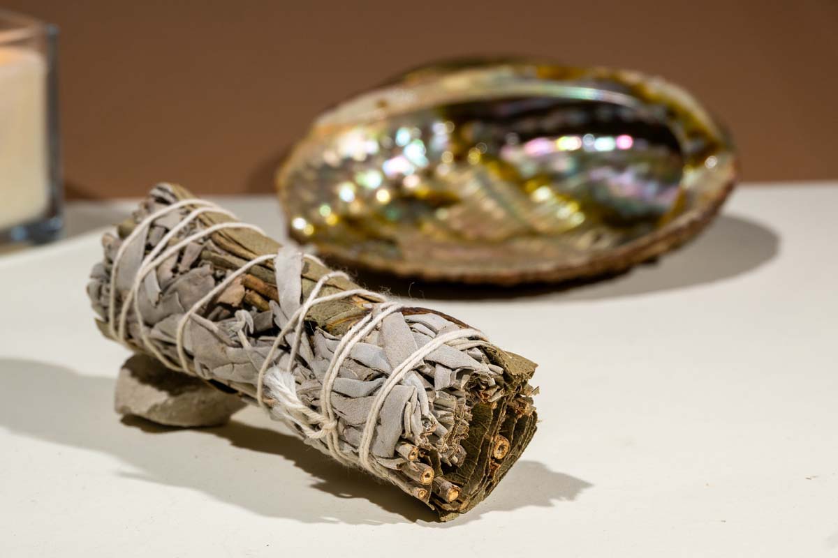 Approcher une flamme sur un bâton de sauge blanche et d'eucalyptus, soufflez doucement pour le rendre incandescent. Initiez le rituel de purification en faisant des petits cercles dans le sens des aiguilles d'une montre dans les différentes pièces ou sur les objets à purifier dès que la fumée commence à se propager.