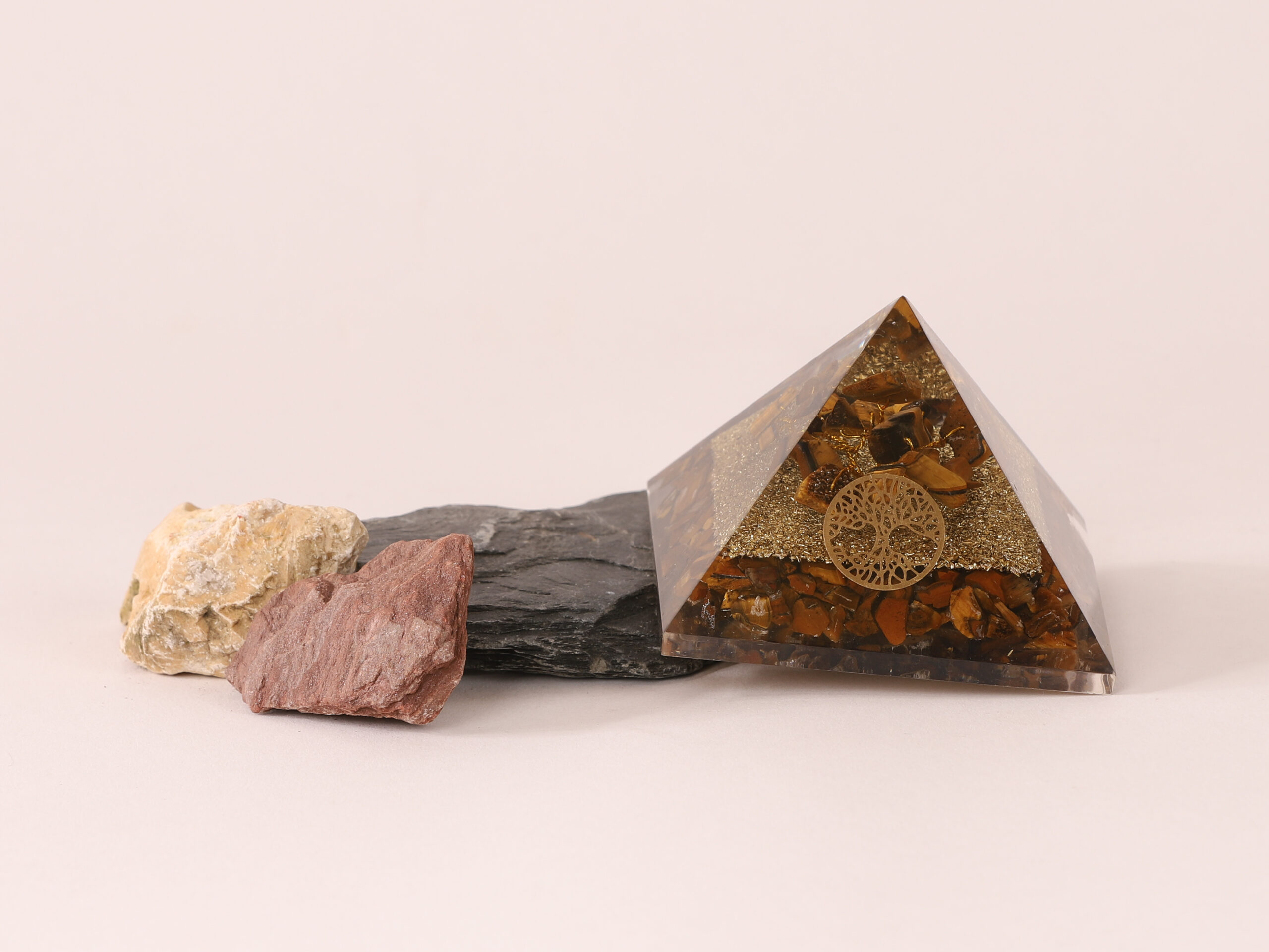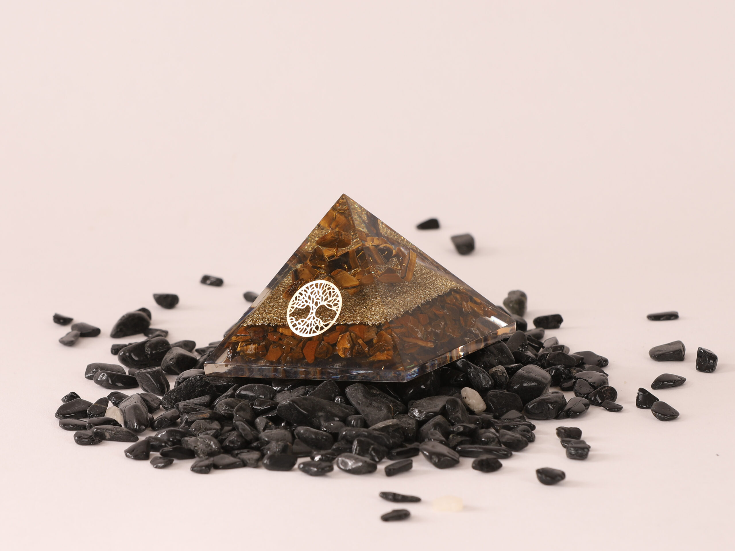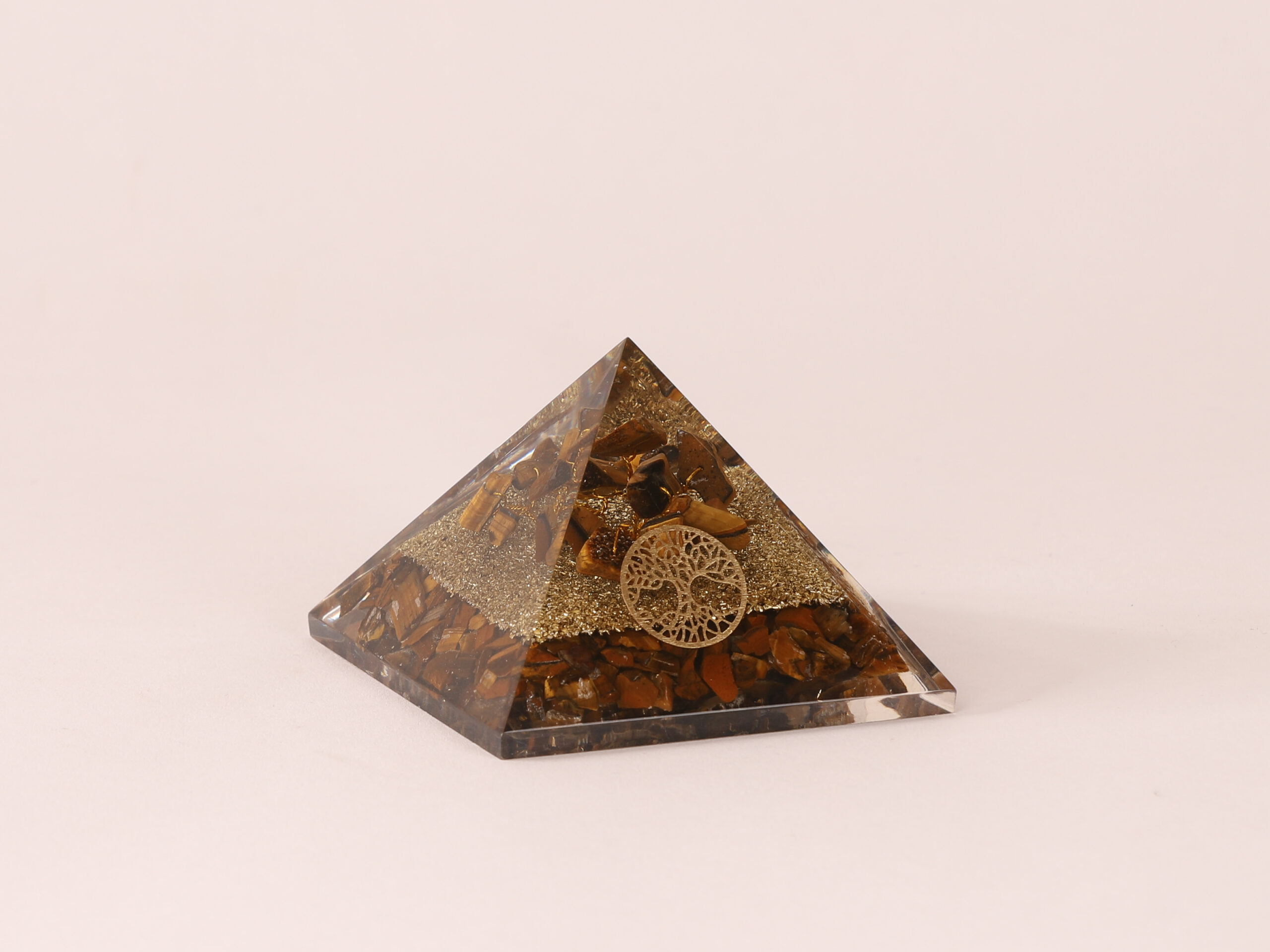 Orgonite pyramide Oeil de Tigre arbre du bonheur