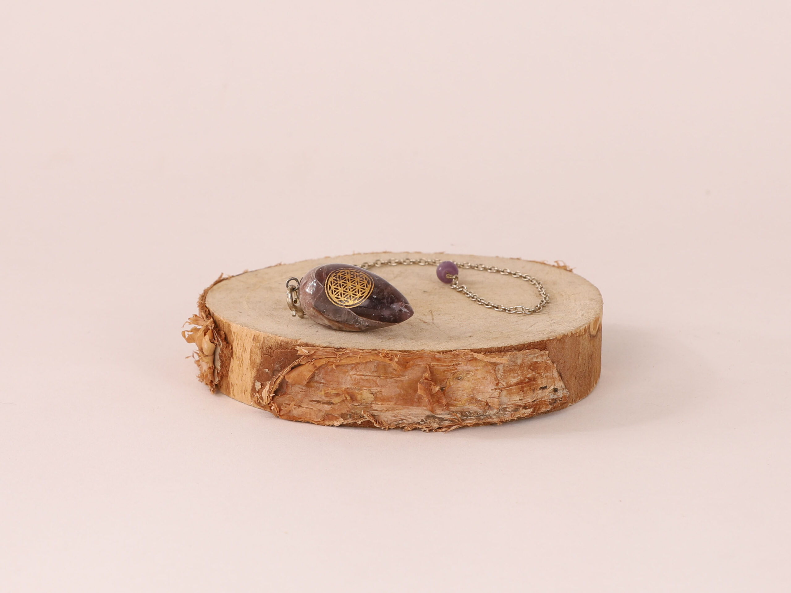 Utilisé en radiesthésie, ce pendule aide à obtenir des réponses sur les plans physique, émotionnel et spirituel. L’Améthyste apporte apaisement, clarté mentale, élévation spirituelle et soutien à la méditation. Le pendentif est orné d’une Fleur de Vie, symbole sacré d’harmonie, de protection et de connexion à l’énergie universelle.