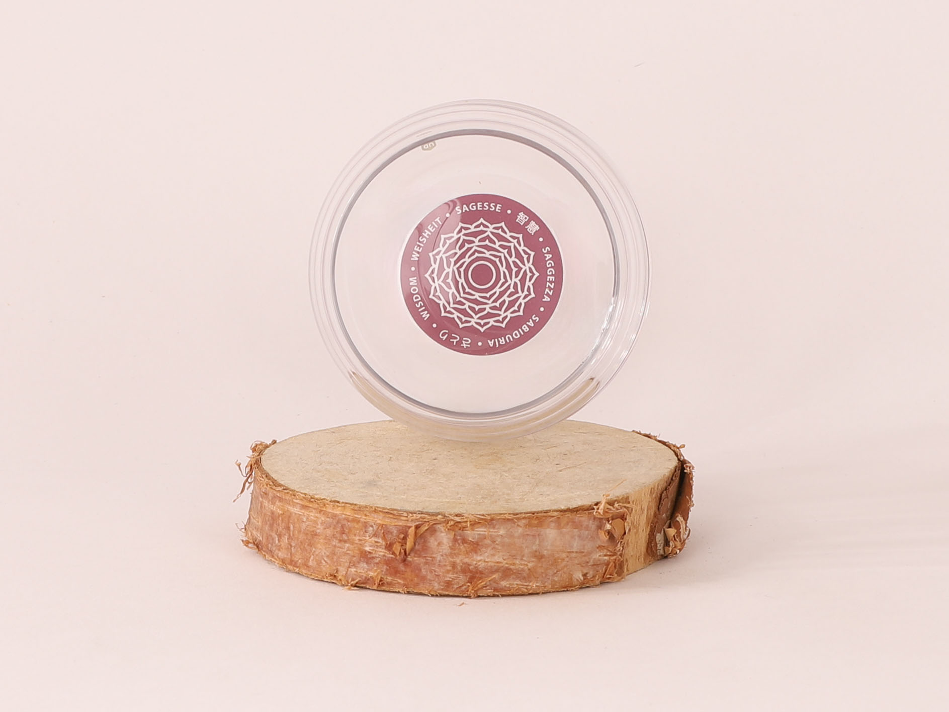 Verre énergisant soufflé sans plomb symbole Chakra couronne. Ces verres énergisants sont pensés pour réactiver au gré du moment le chakra en demande de soutien. Les couleurs, les symboles, les mots et affirmations, de même que les proportions des formes influencent la structure de l’eau.