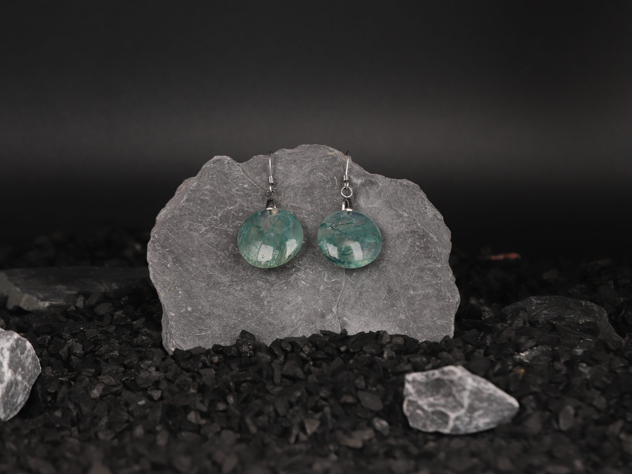 Boucles d’oreilles cercle en Agate Mousse attache crochet