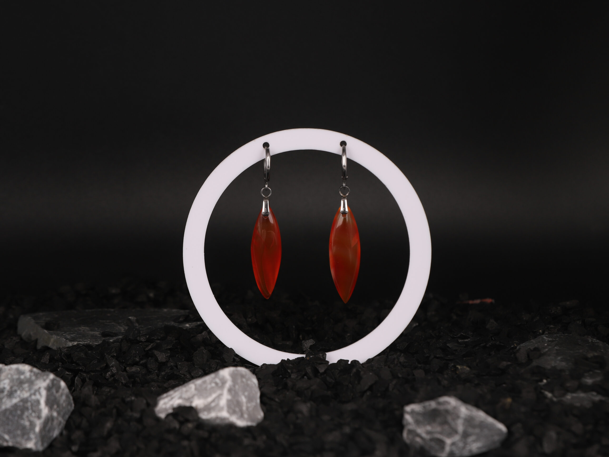 Boucles d’oreilles marquise en Cornaline attache ronde