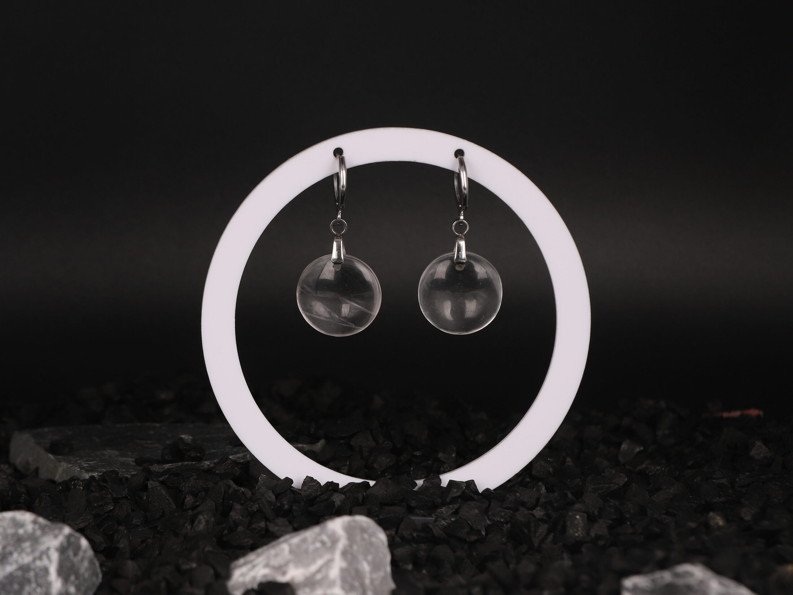 Boucles d’oreilles cercle en Cristal de Roche attache ronde