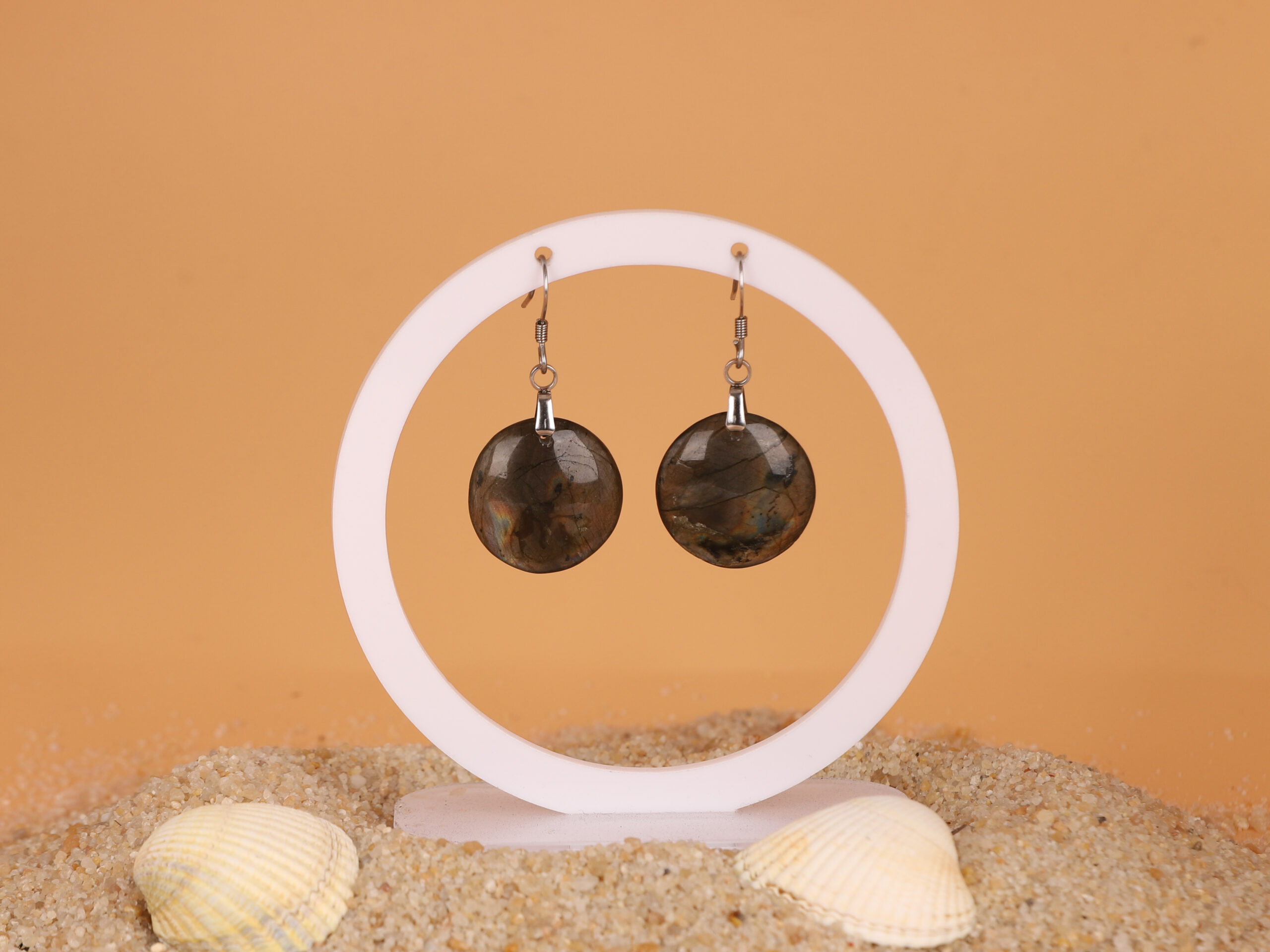 Boucles d’oreilles cercle Labradorite arc-en-ciel attache crochet