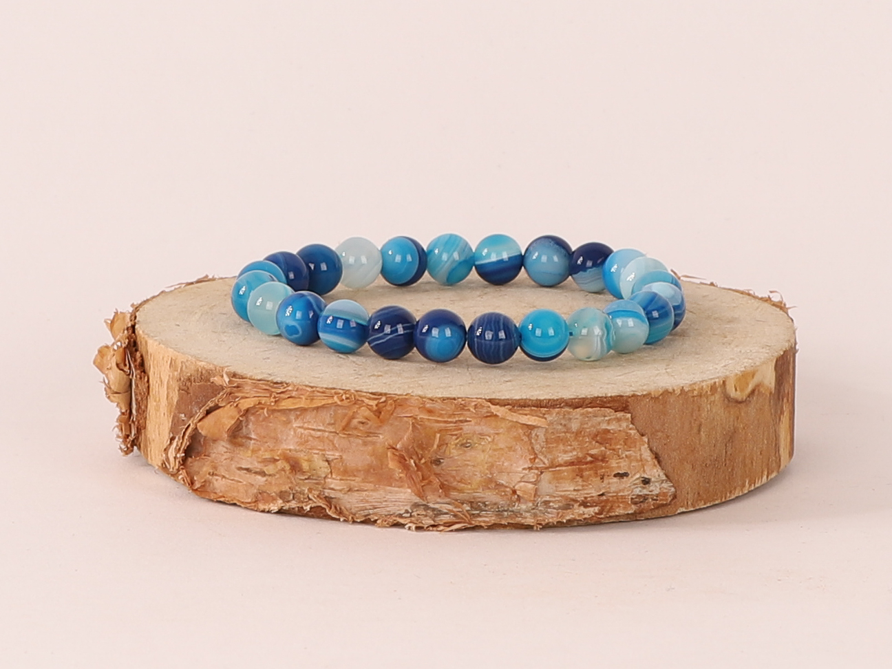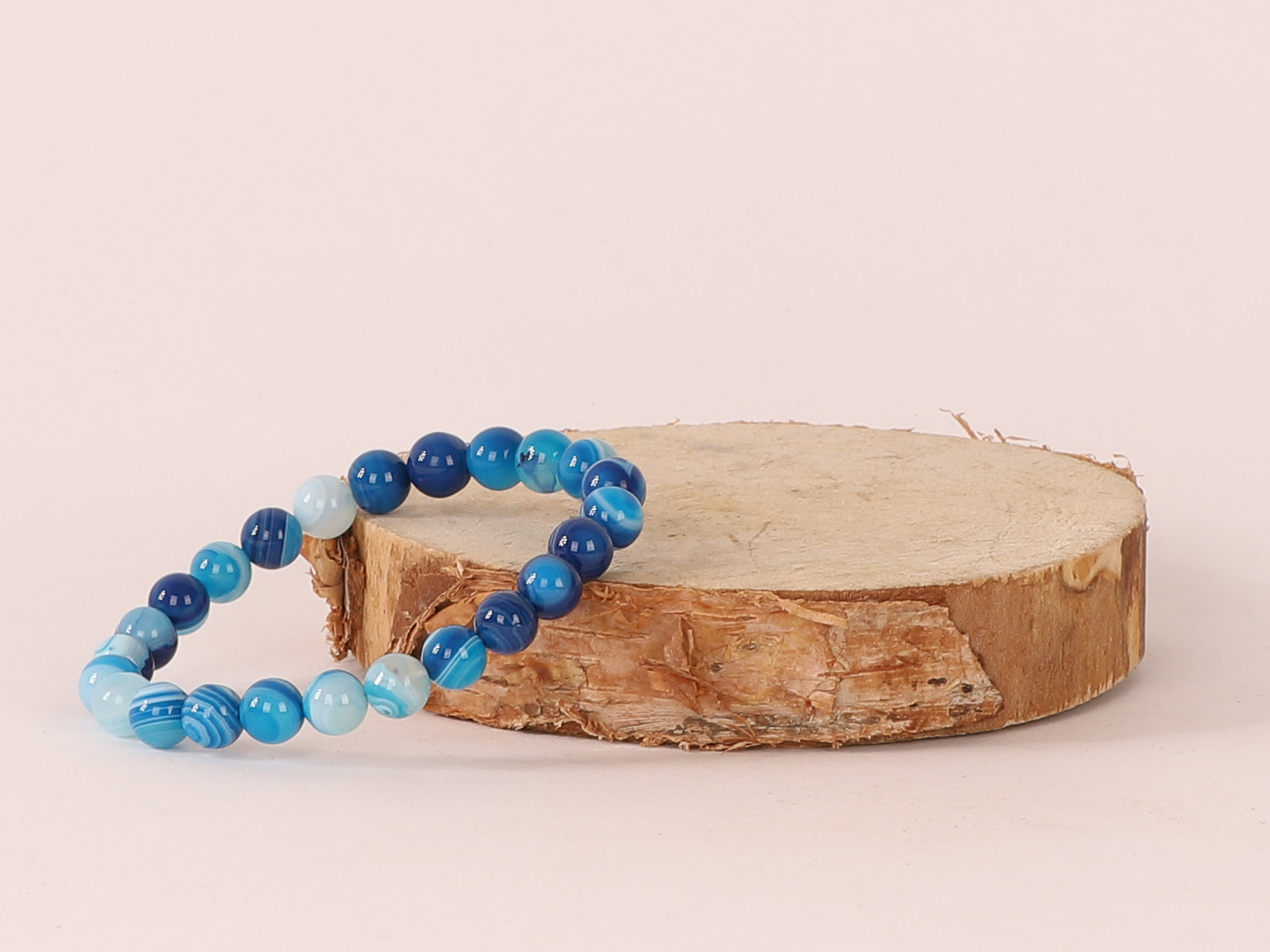 Bracelet Agate Bleue ‘A’ perles 8mm