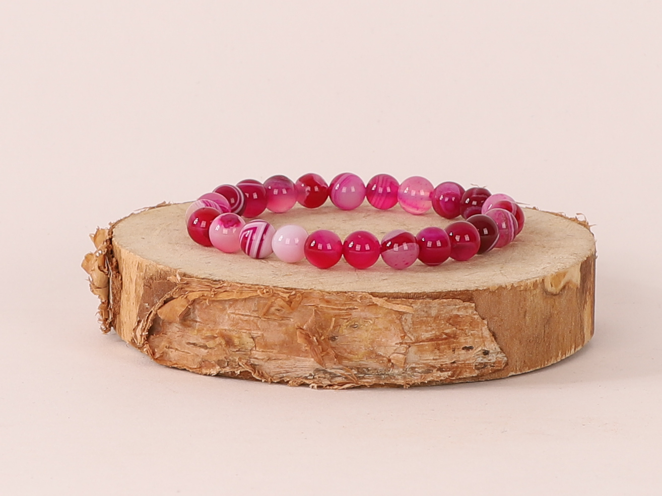Bracelet Agate Rose ‘A’ perles 8mm