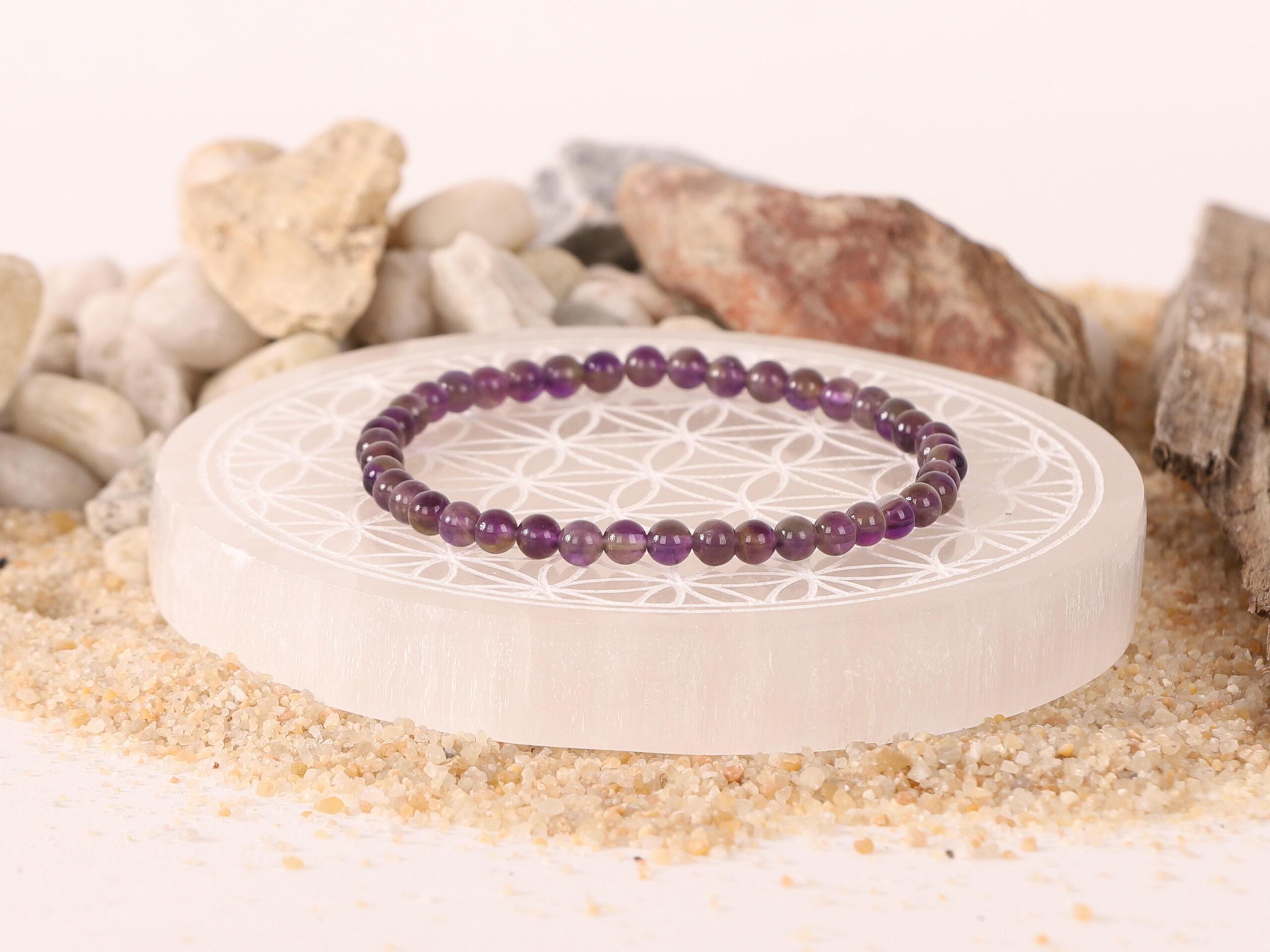 Bracelet Améthyste ‘A’ Dark perles 4mm