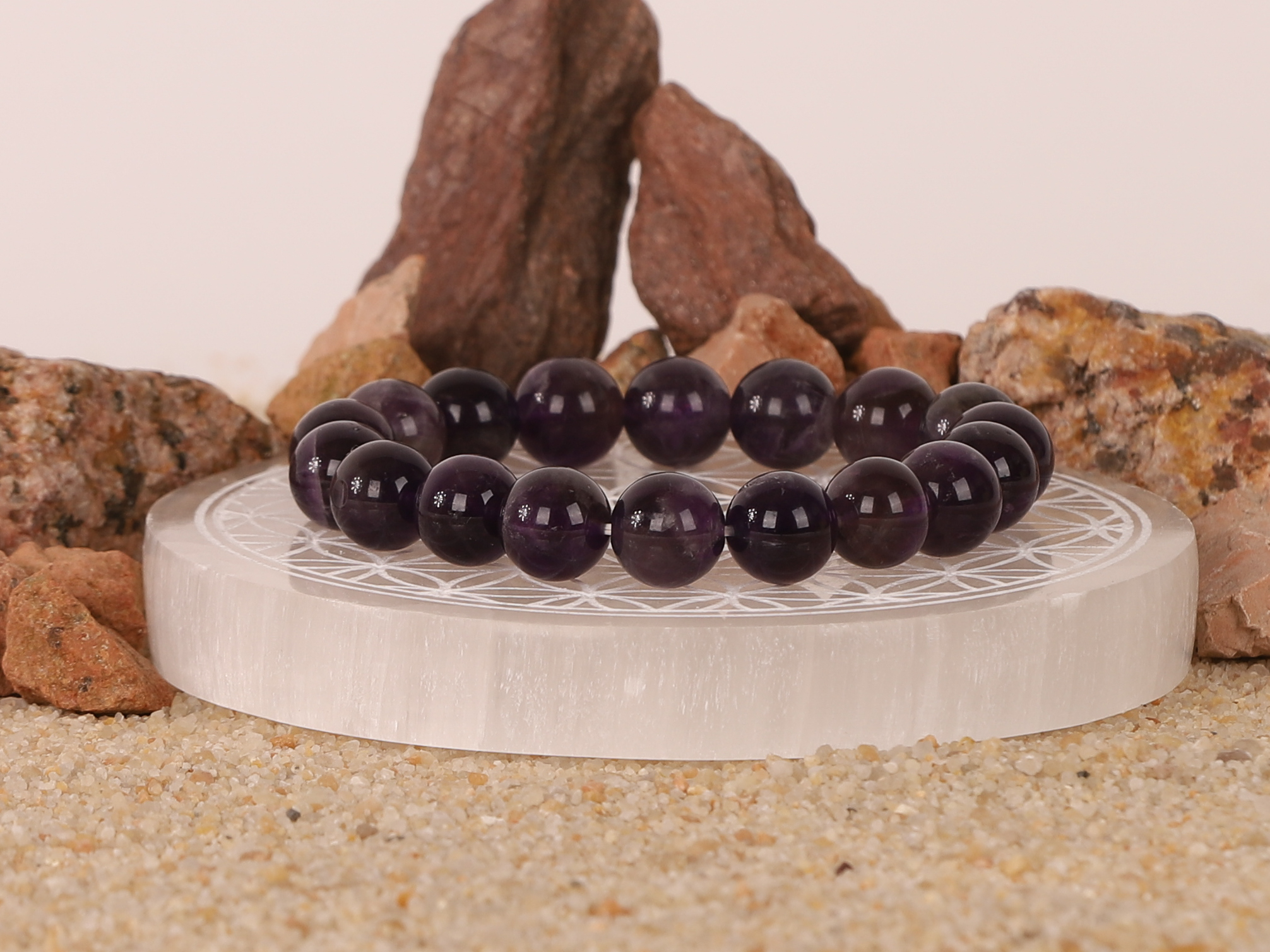 Bracelet Améthyste ‘A’ Dark perles 10mm
