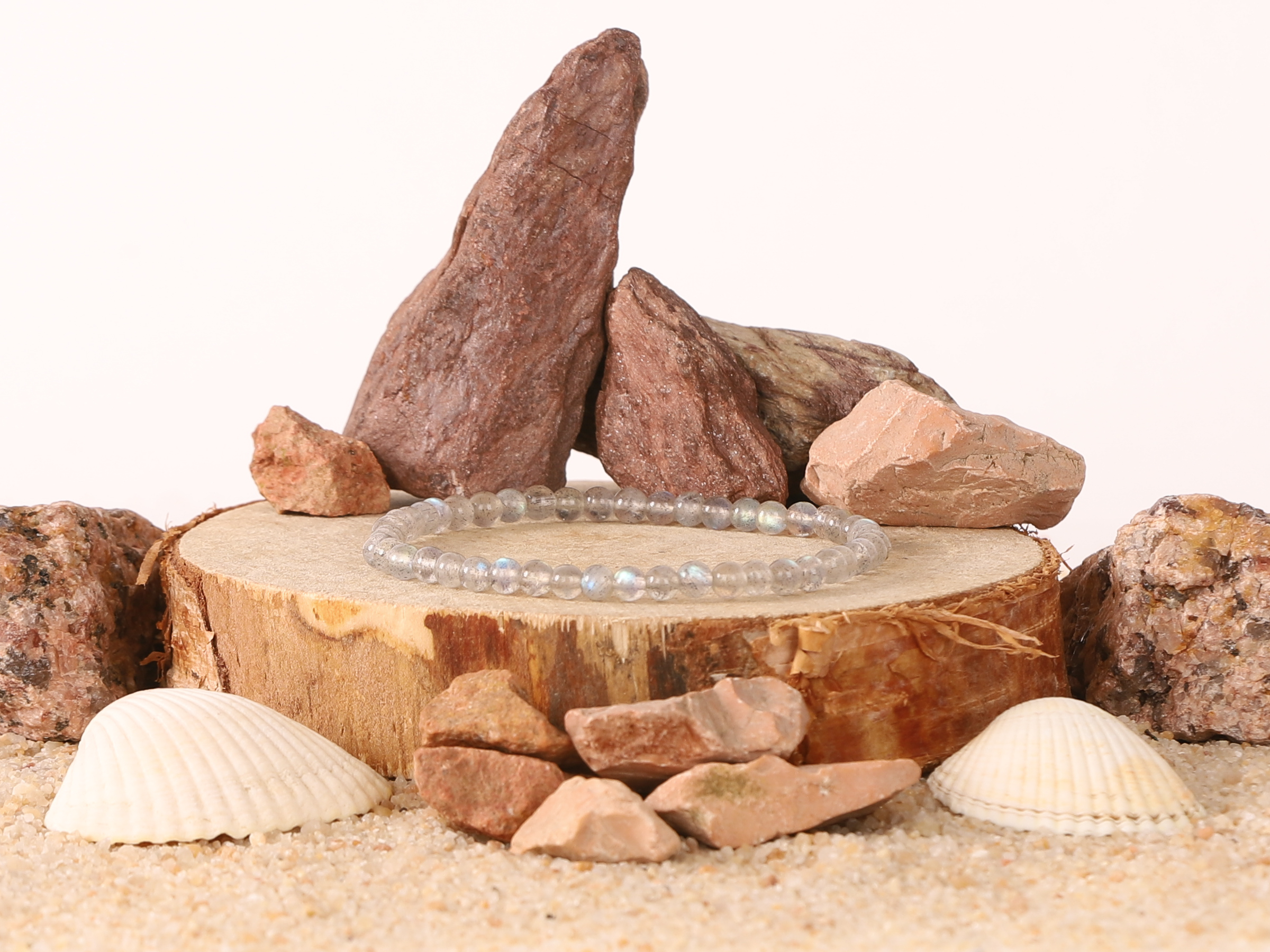 Ce bracelet en Labradorite, composé de pierres de 4mm et mesurant environ 18cm est empreint de légendes. Dans les régions nordiques, certains mythes racontent que les aurores boréales seraient apparues après qu’un guerrier inuit ait frappé une pierre de labradorite avec sa lance. Les labradorites symbolisent des rayons d’aurores boréales emprisonnés dans la roche. Cette pierre jouerait un rôle essentiel, renfermant l’âme de nos ancêtres. Aujourd’hui, elle est encore considérée comme une puissante pierre de protection et de guérison, un trésor prisé par de nombreux thérapeutes.
