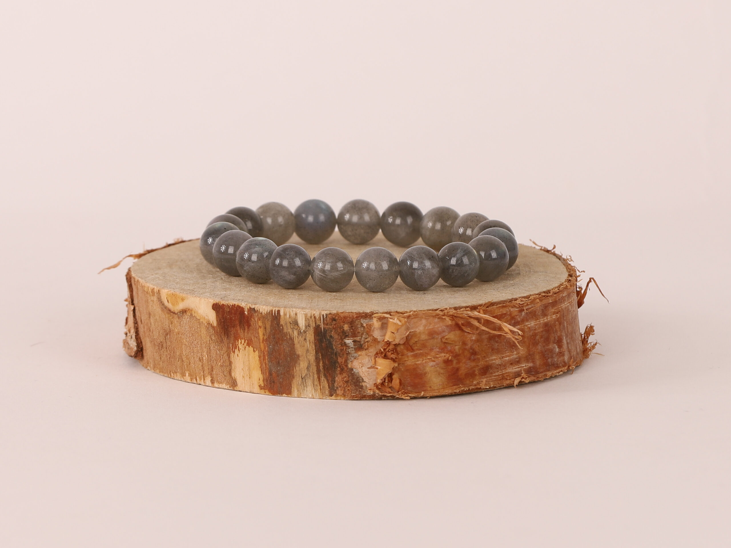 Ce bracelet en Labradorite, aux teintes grises irisées, est une pierre de protection par excellence. Connue comme une “guérisseuse”, elle dissipe les énergies négatives et les angoisses. Apportant un équilibre intérieur, la Labradorite stimule également l’énergie positive.