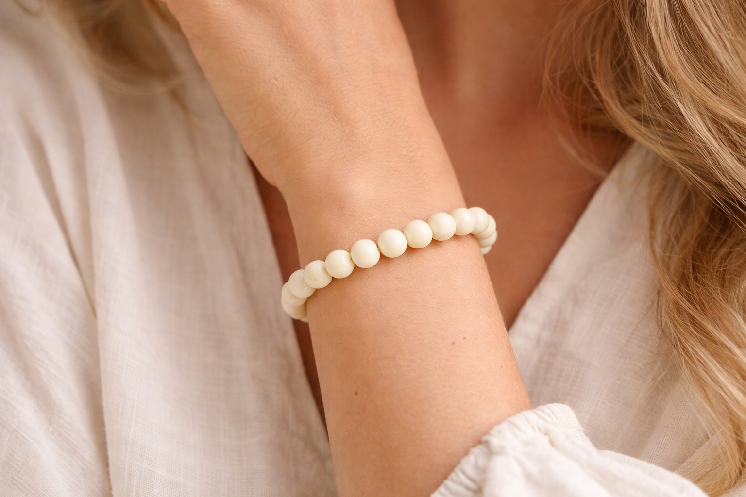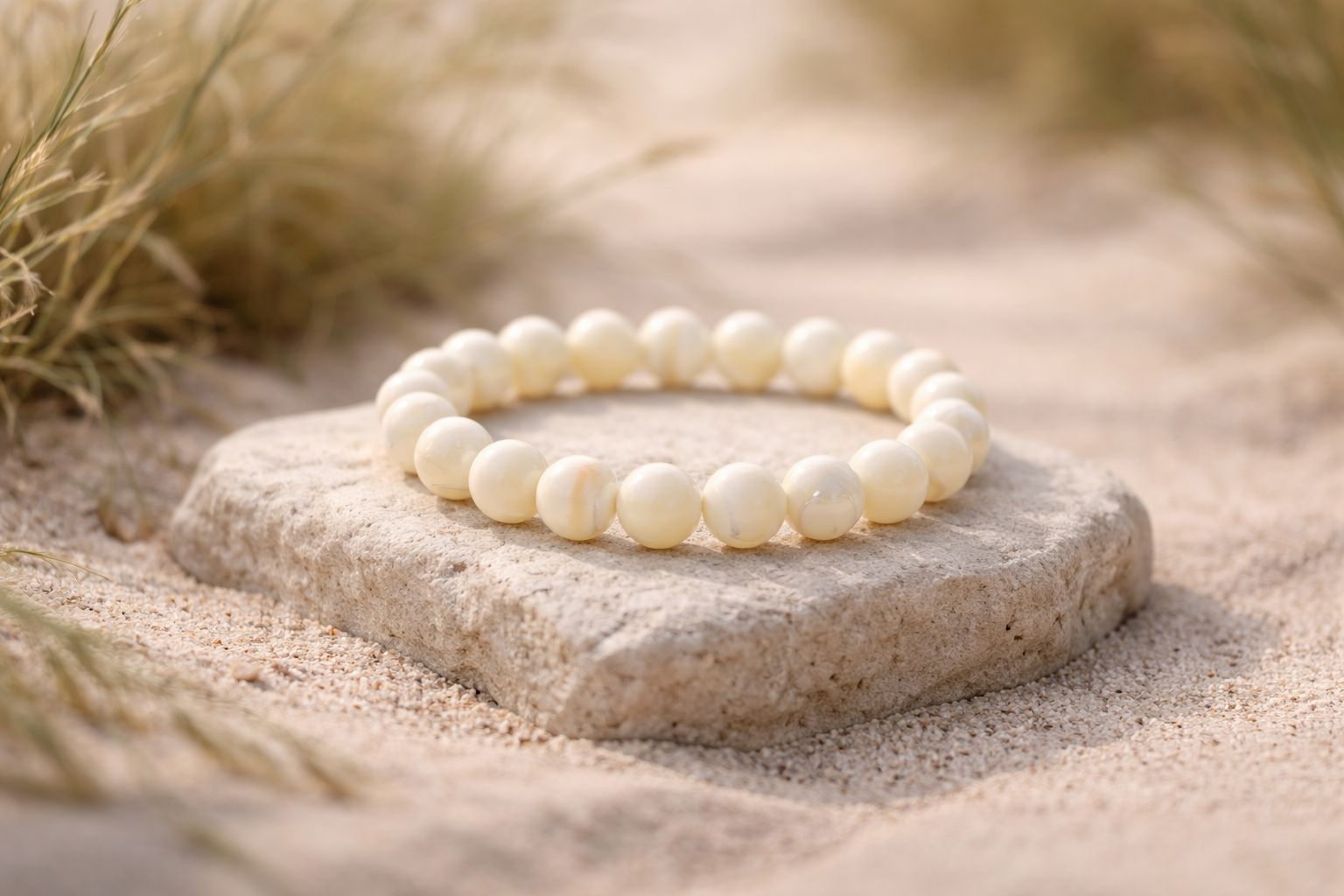 Ce bracelet en Nacre naturelle se distingue par son éclat doux et irisé, aux reflets subtils et changeants. Appréciée pour ses vertus apaisantes, la Nacre favorise la sérénité intérieure, l’équilibre émotionnel et la douceur. Elle invite à la protection contre les énergies négatives tout en renforçant la confiance en soi et l’harmonie.