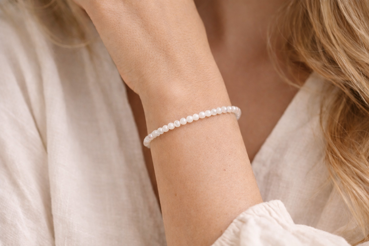 Bracelet Nacre Naturelle ‘A’ perles 4mm