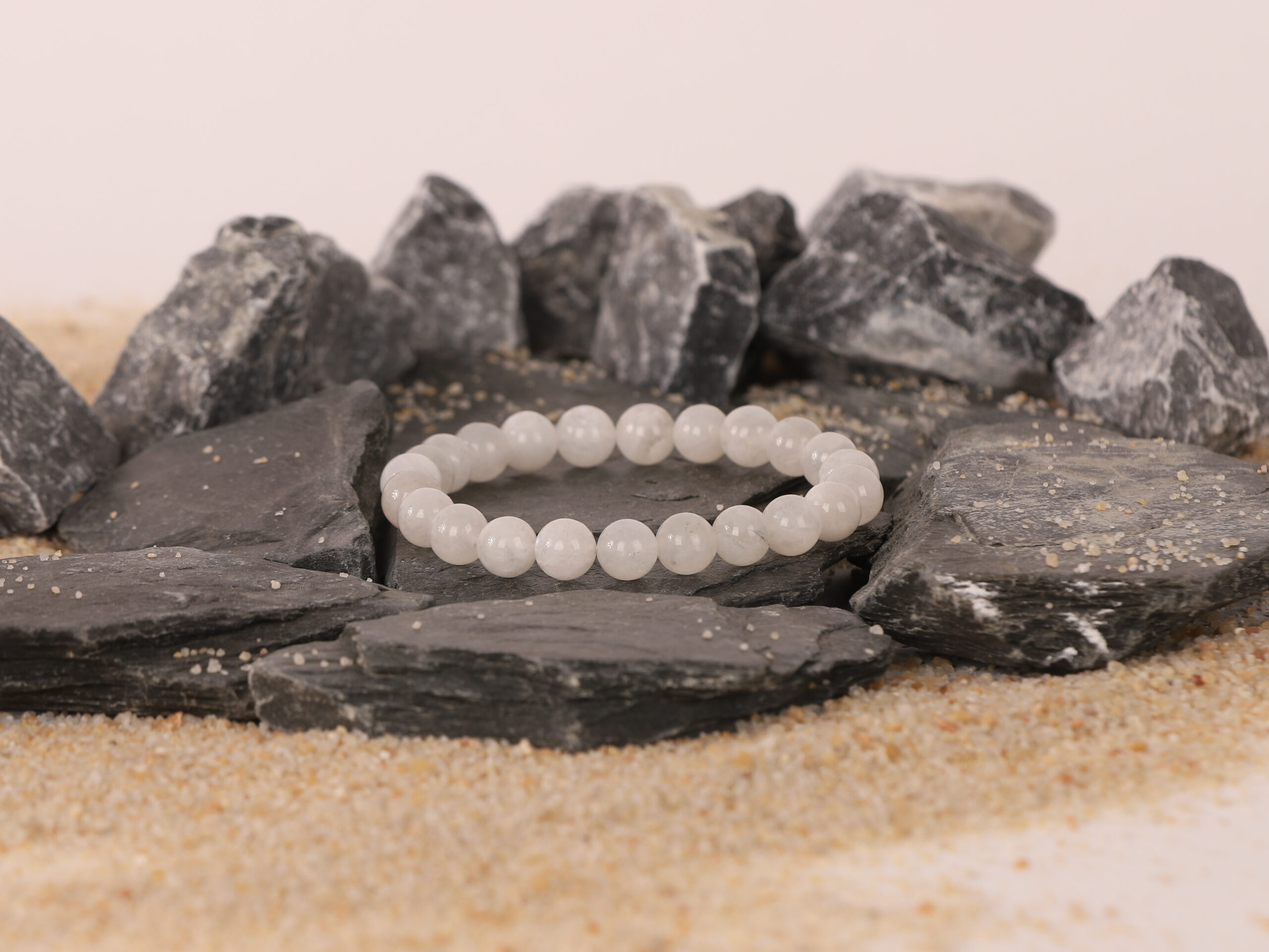 Bracelet Pierre de Lune Blanche ‘AA’ perles 8mm