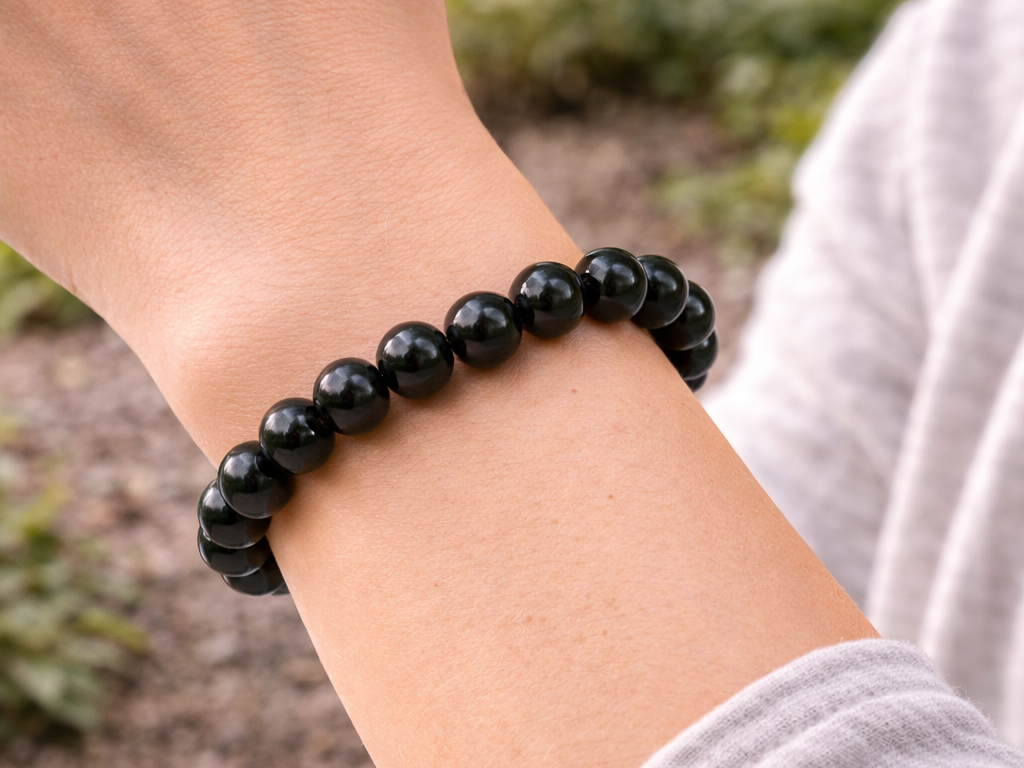Ce bracelet en Tourmaline Noire de qualité supérieure arbore une couleur noire intense. Reconnue pour ses propriétés protectrices, la Tourmaline Noire aide à apaiser les peurs, les angoisses et les blocages, tout en favorisant l’affirmation de soi. Elle protège également des énergies négatives.