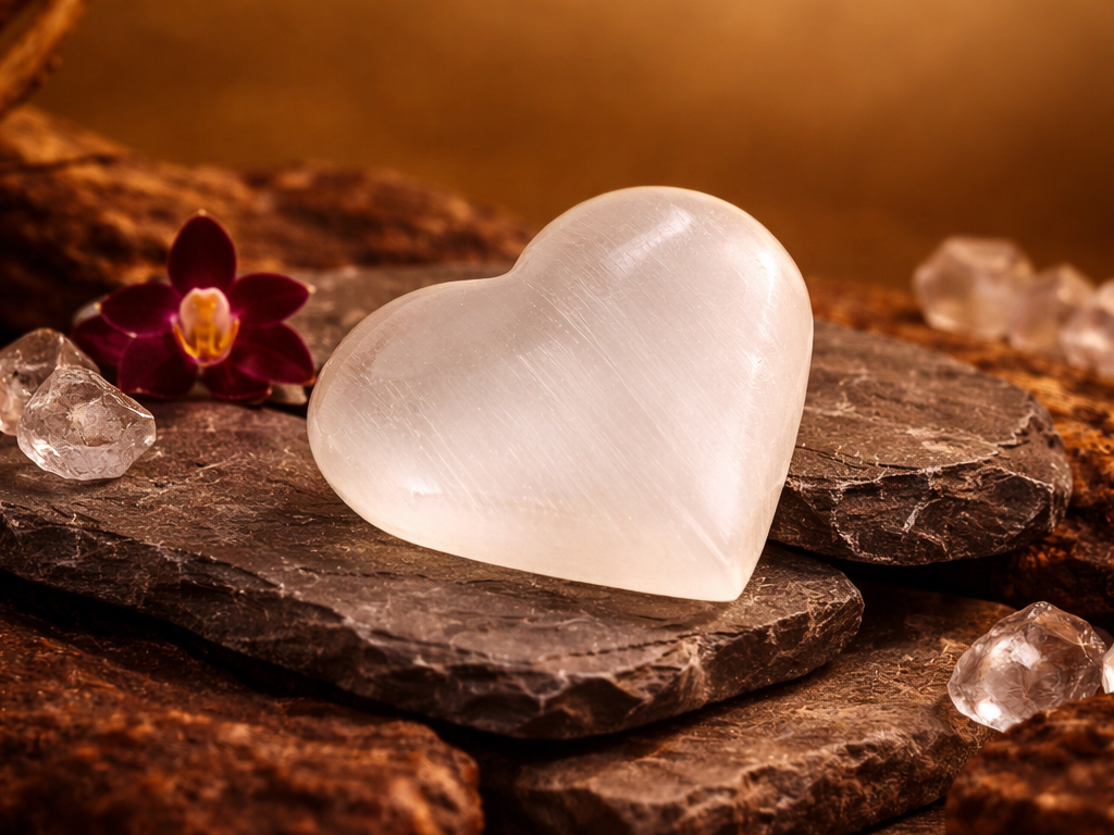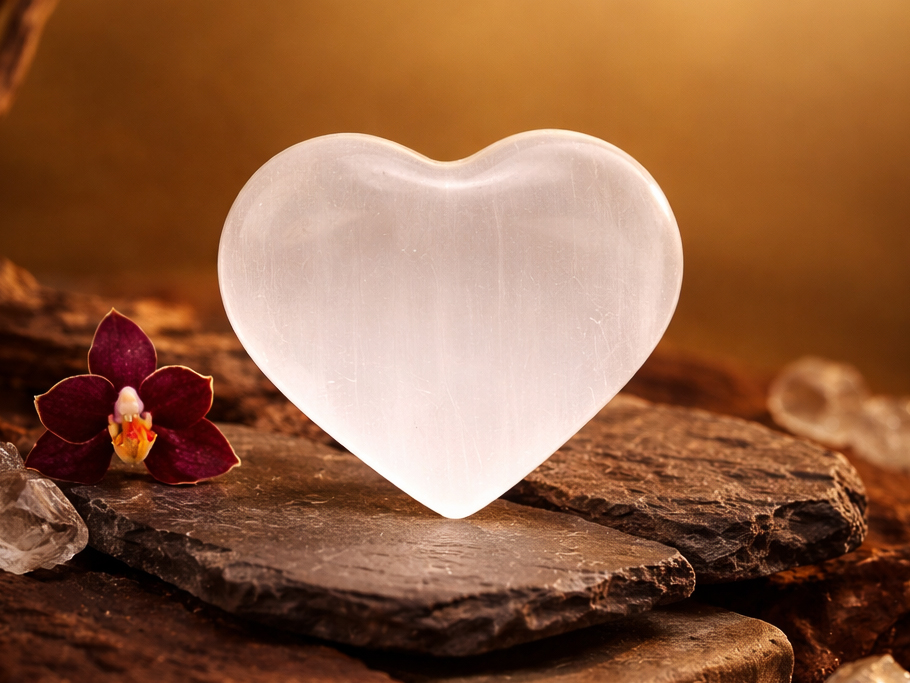 Notre cœur en sélénite est une pièce à la fois simple, lumineuse et pleine de douceur. Taillé dans une pierre naturelle reconnue pour son éclat translucide, il capte la lumière et apporte instantanément une touche élégante à une table de chevet, un bureau ou un coin bien-être.
