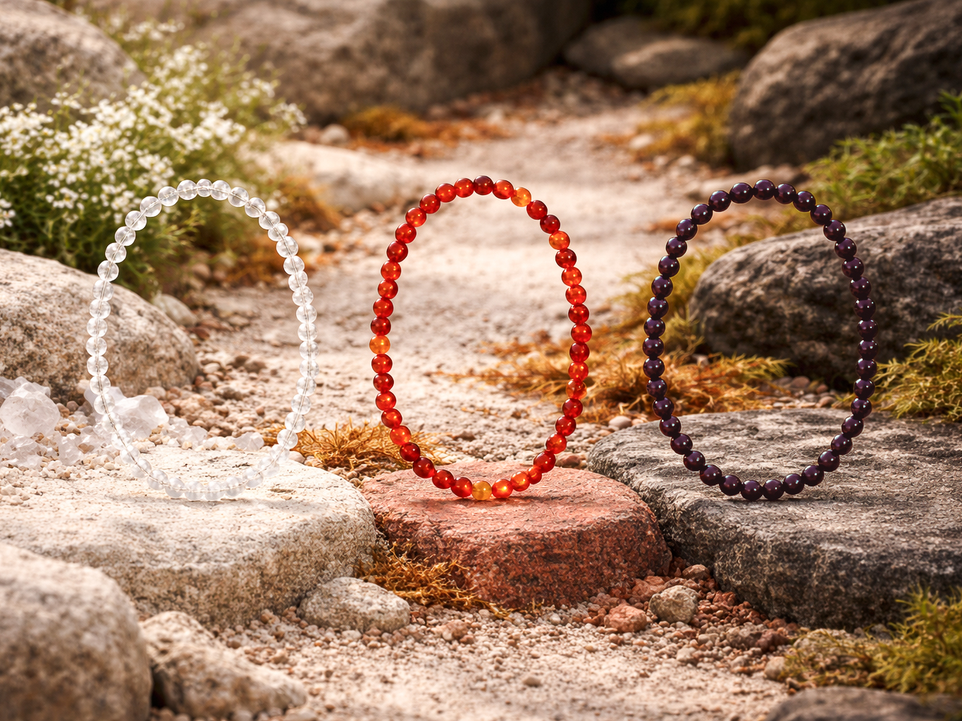 Le Kit Bracelets Vitalité et Joie associe la Cornaline, le Grenat et le Cristal de Roche pour stimuler l’énergie vitale et raviver l’enthousiasme. La Cornaline apporte dynamisme, courage et aide à dépasser les blocages pour passer à l’action. Le Grenat soutient la force intérieure, renforce l’endurance et réveille la passion dans tous les domaines de la vie. Le Cristal de Roche amplifie l’énergie des autres pierres, clarifie l’esprit et favorise un élan positif au quotidien. Ensemble, ces pierres offrent un véritable soutien pour retrouver la vitalité physique, cultiver la joie de vivre et avancer avec confiance et motivation. Ce kit est idéal pour se ressourcer, surmonter les baisses d’énergie et accueillir chaque journée avec enthousiasme. Ce kit comprend trois bracelets en perles naturelles de 4 mm.