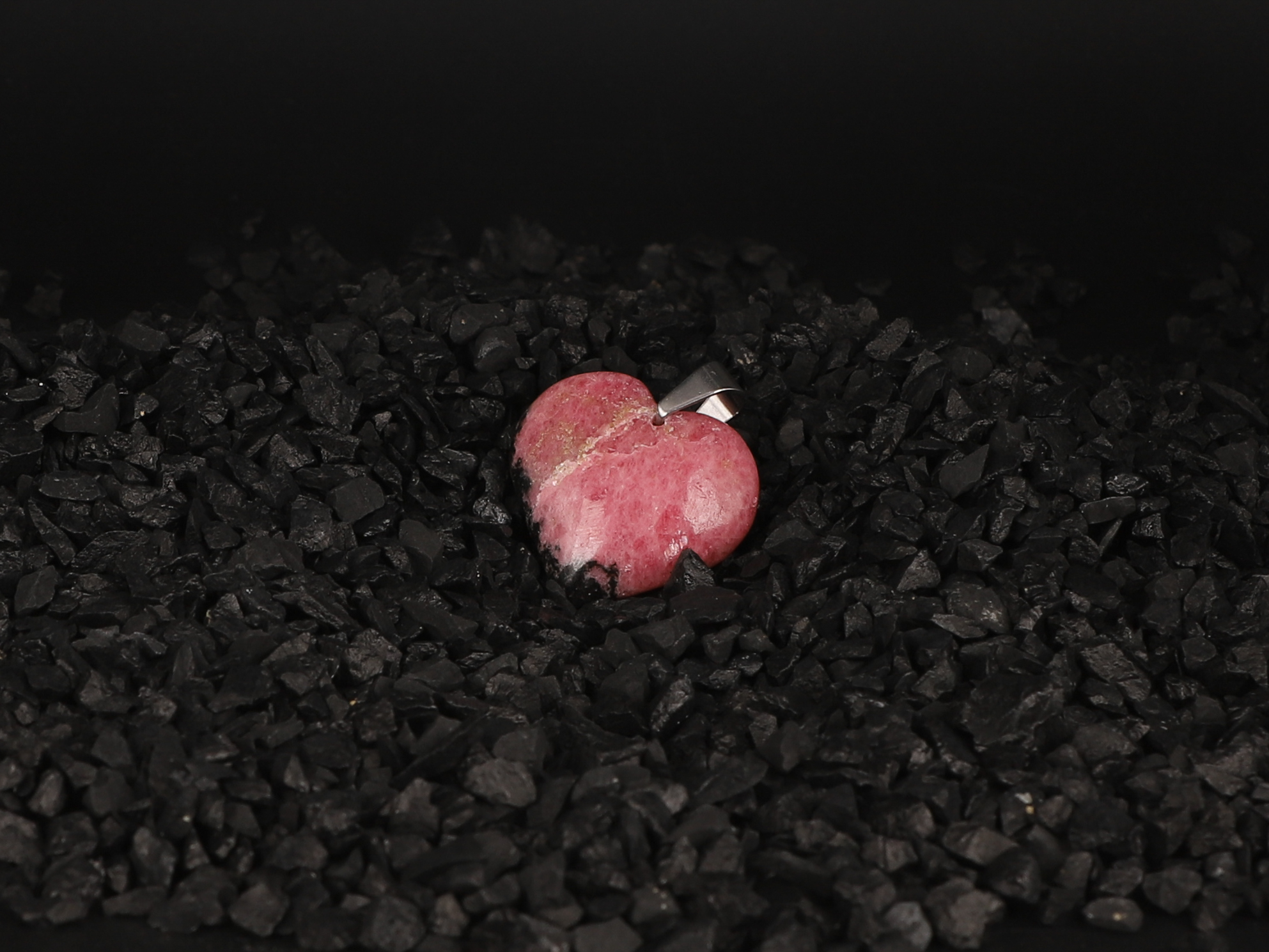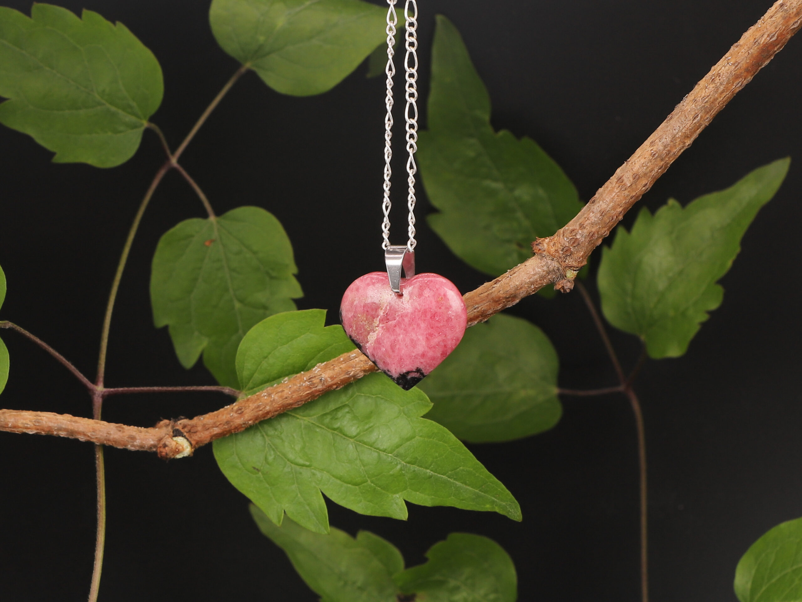 Pendentif coeur Rhodonite black line