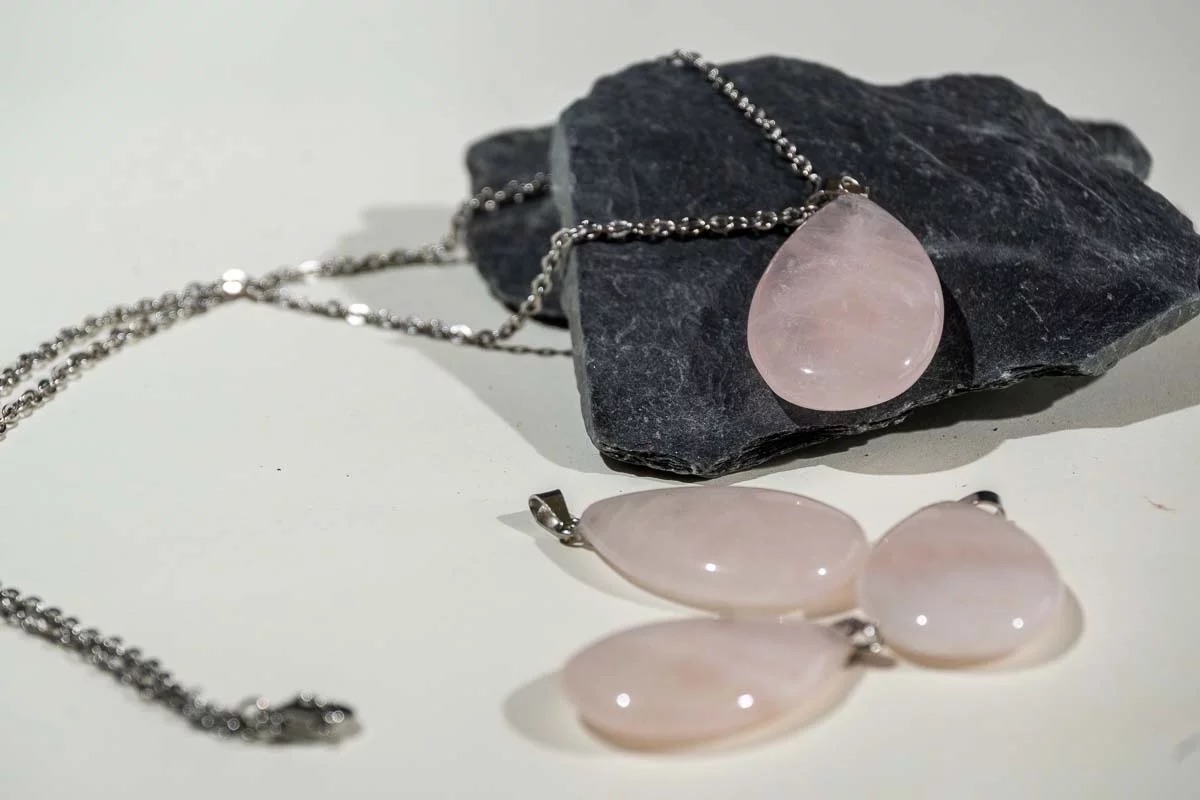 Ce pendentif en forme de larme, composé d’une pierre naturelle de Quartz rose et doté d’une attache, incarne la paix et l’amour tout en apaisant les blessures émotionnelles.