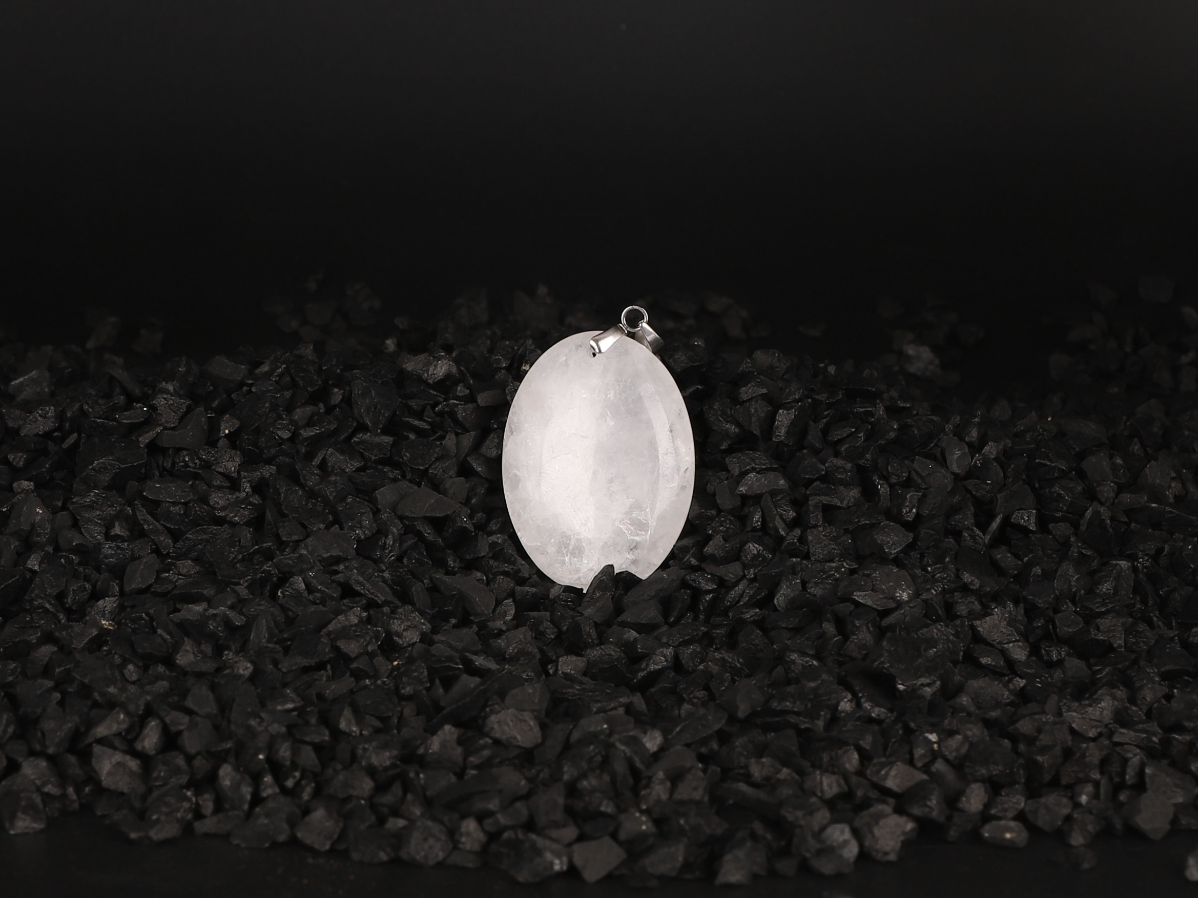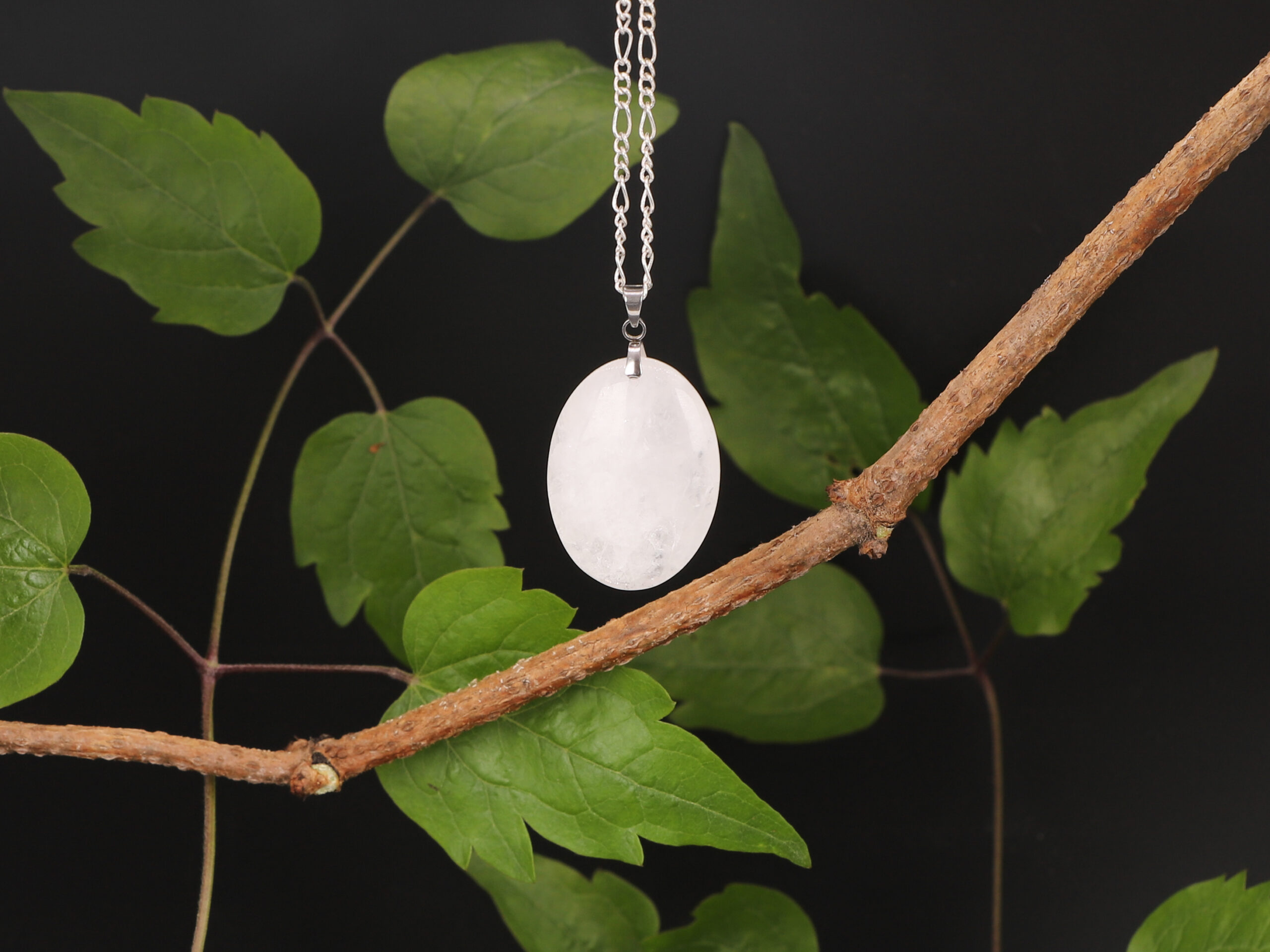 Pendentif ovale Cristal de Roche blanc