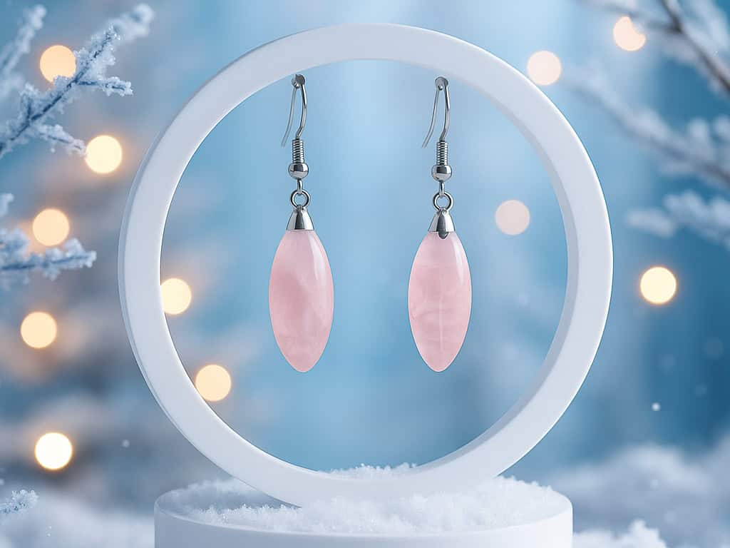 Le pendentif et les boucles d’oreilles en quartz rose complètent ce rituel de douceur. Pierre du cœur par excellence, le quartz rose favorise l’amour, la paix intérieure et la confiance en soi. Ses teintes rosées diffusent une énergie bienveillante, apaisant les émotions et encourageant la bienveillance envers soi et les autres.