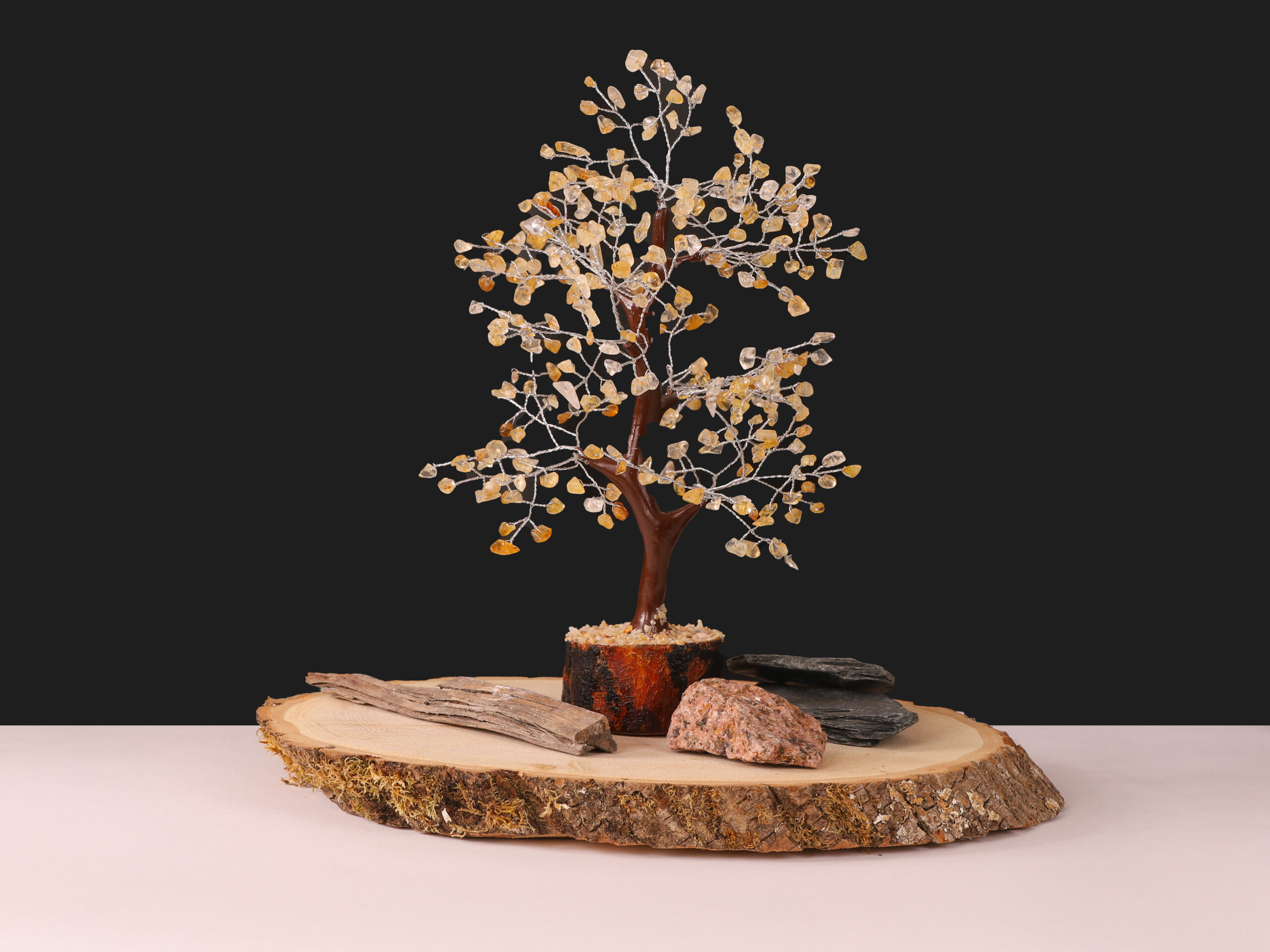 Placez l'arbre du bonheur citrine au centre de votre pièce à vivre pour garantir une répartition équilibrée de son rayonnement.