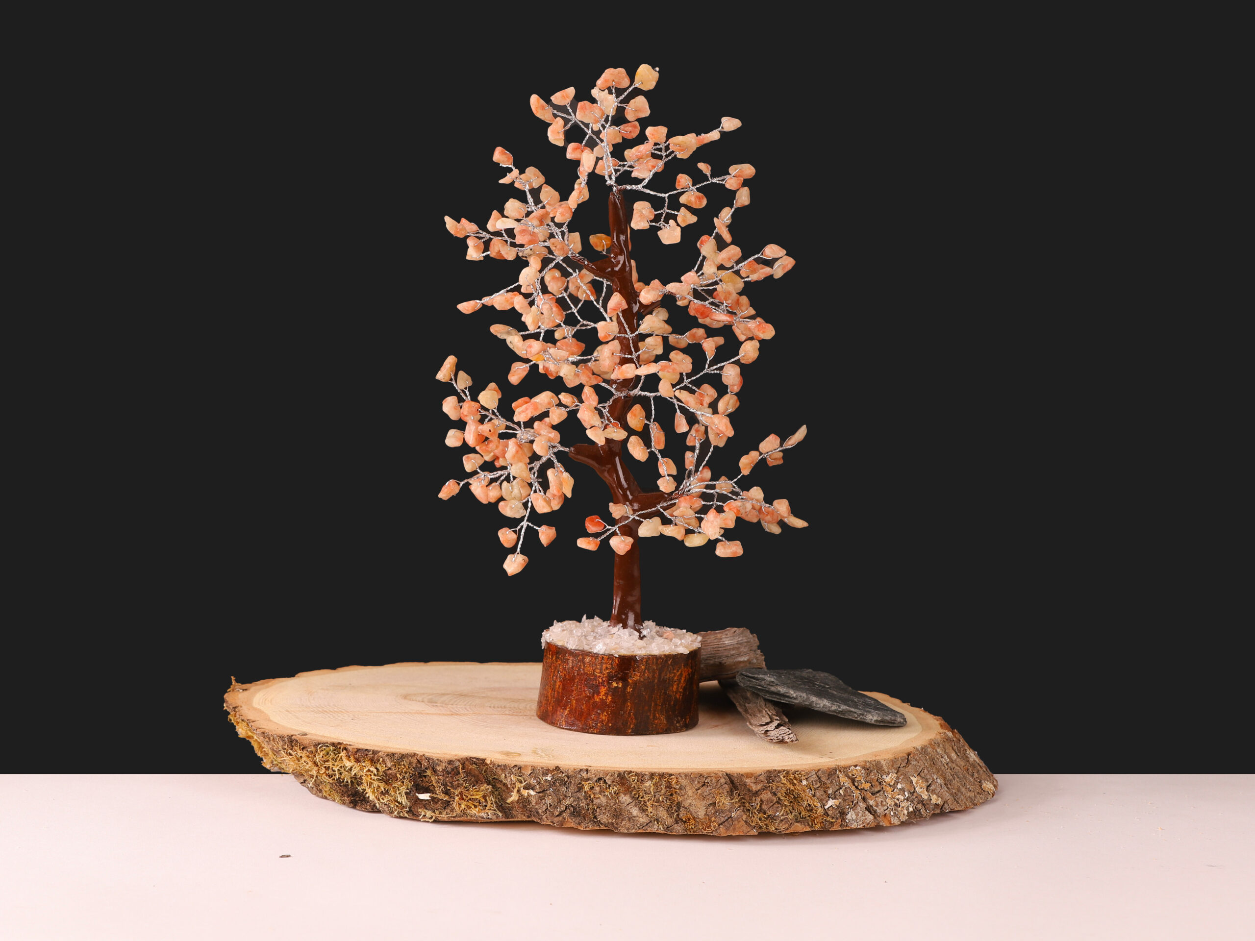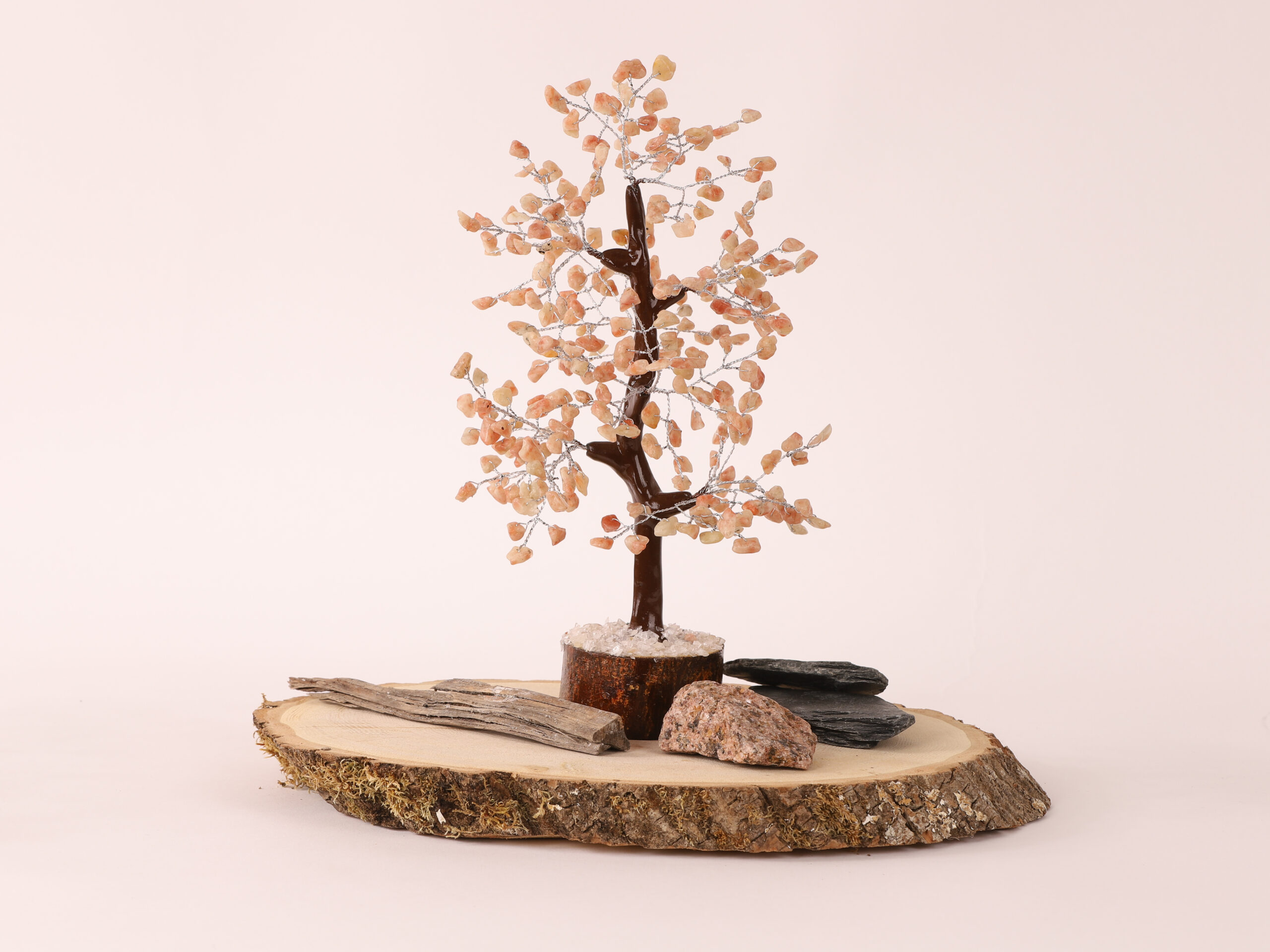 Cet arbre du bonheur en pierre de soleil apportera rayonnement, optimisme et chaleur à votre espace. Composé d’environ 300 pierres brutes, il diffuse une énergie stimulante et équilibrante.