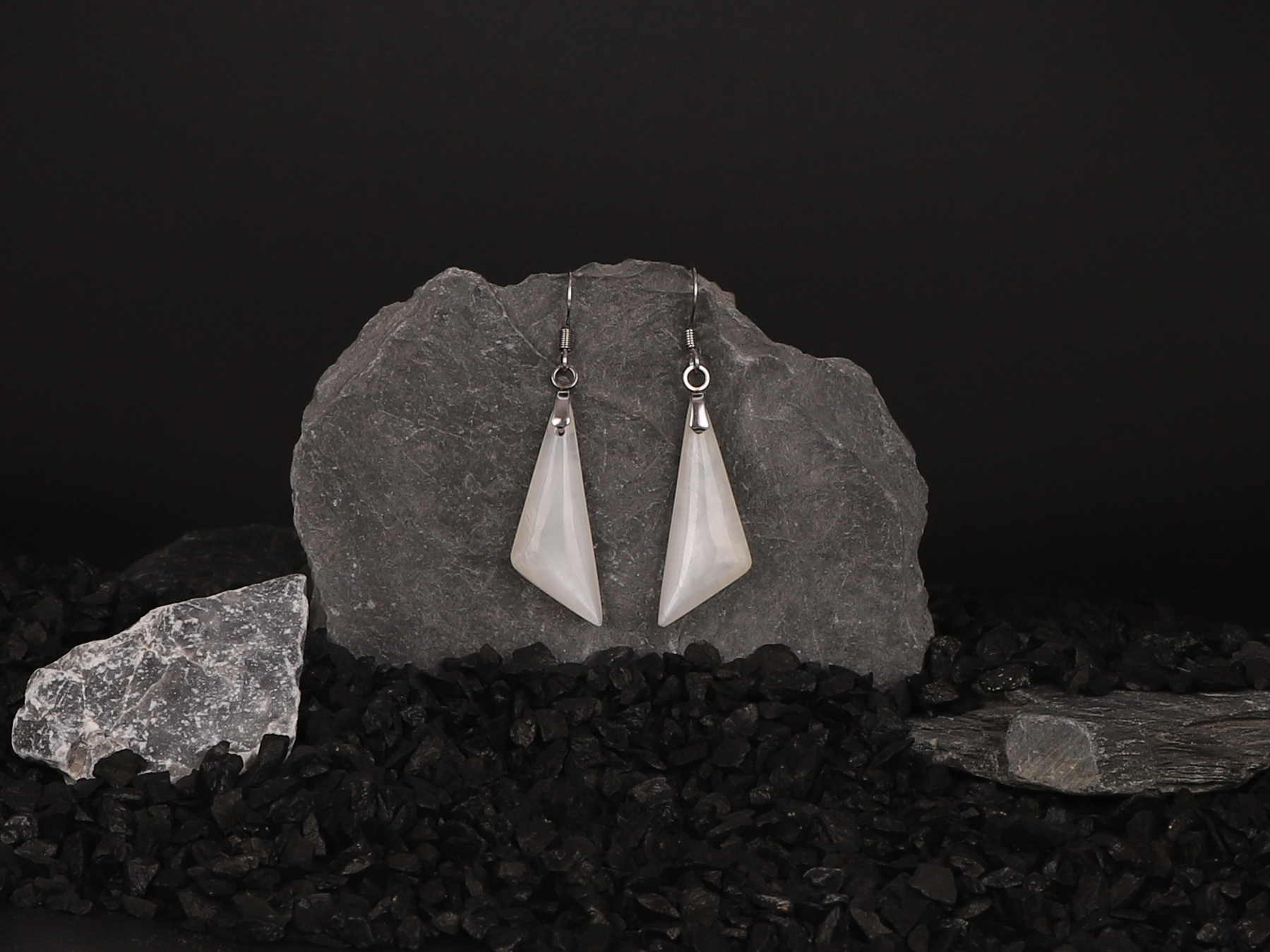 Boucles d’oreilles triangle en Cristal de Roche blanc attache crochet