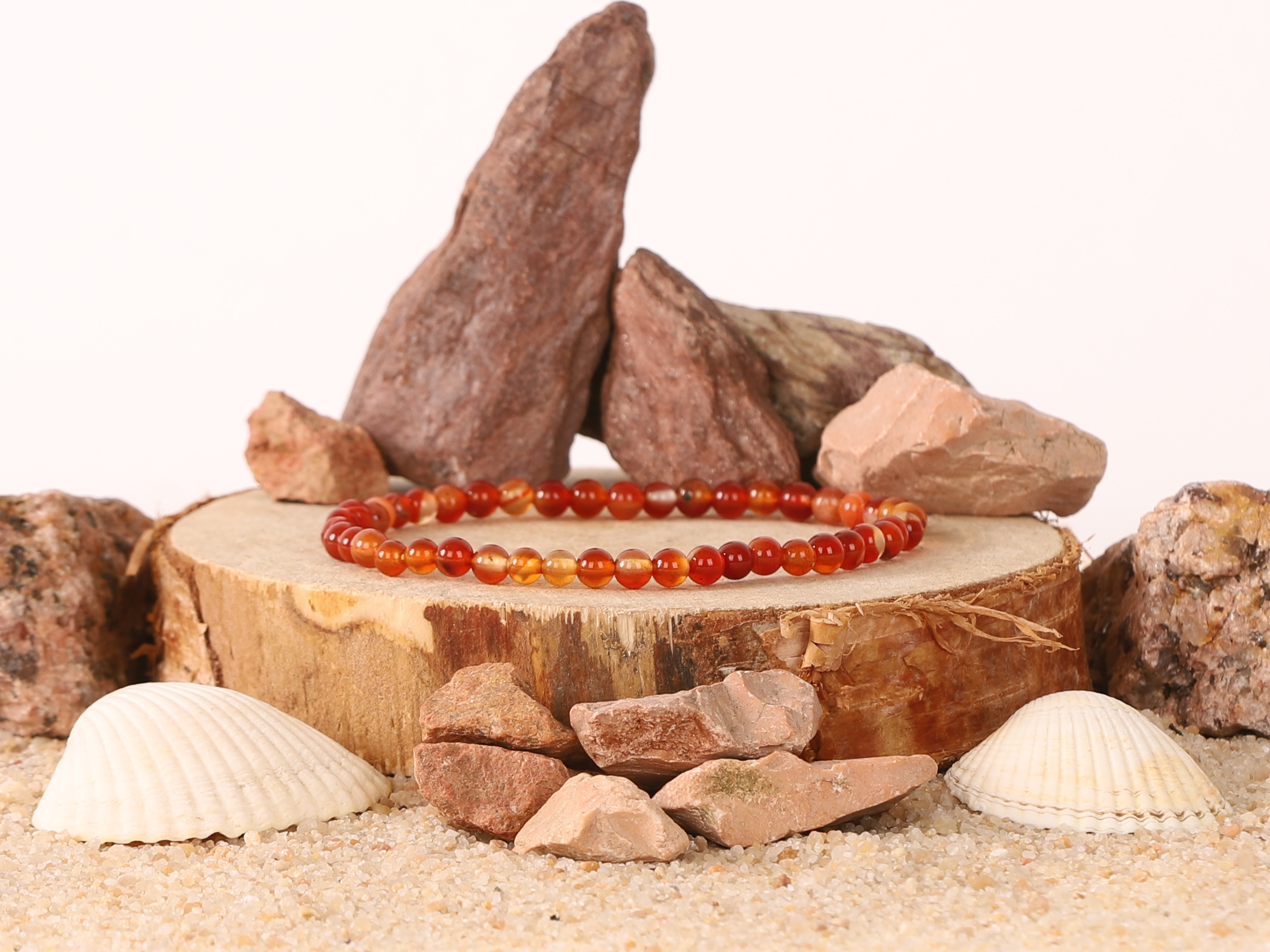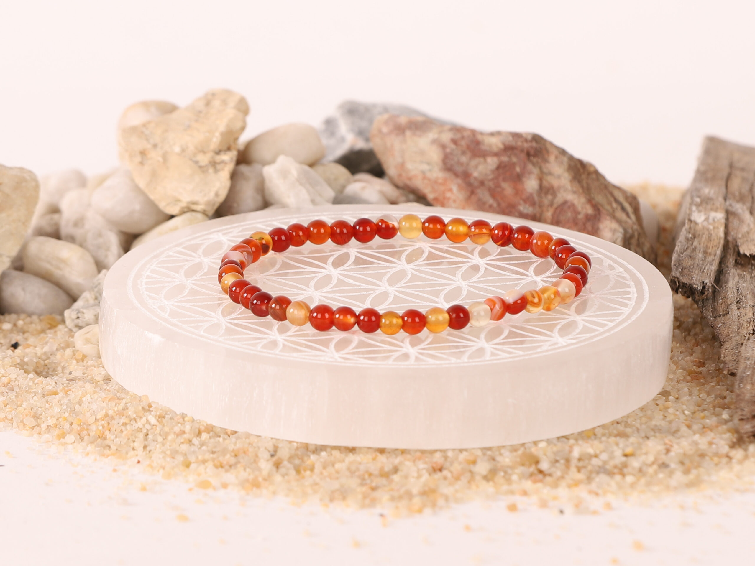 Bracelet Cornaline Rubanée ‘A’ perles 4mm