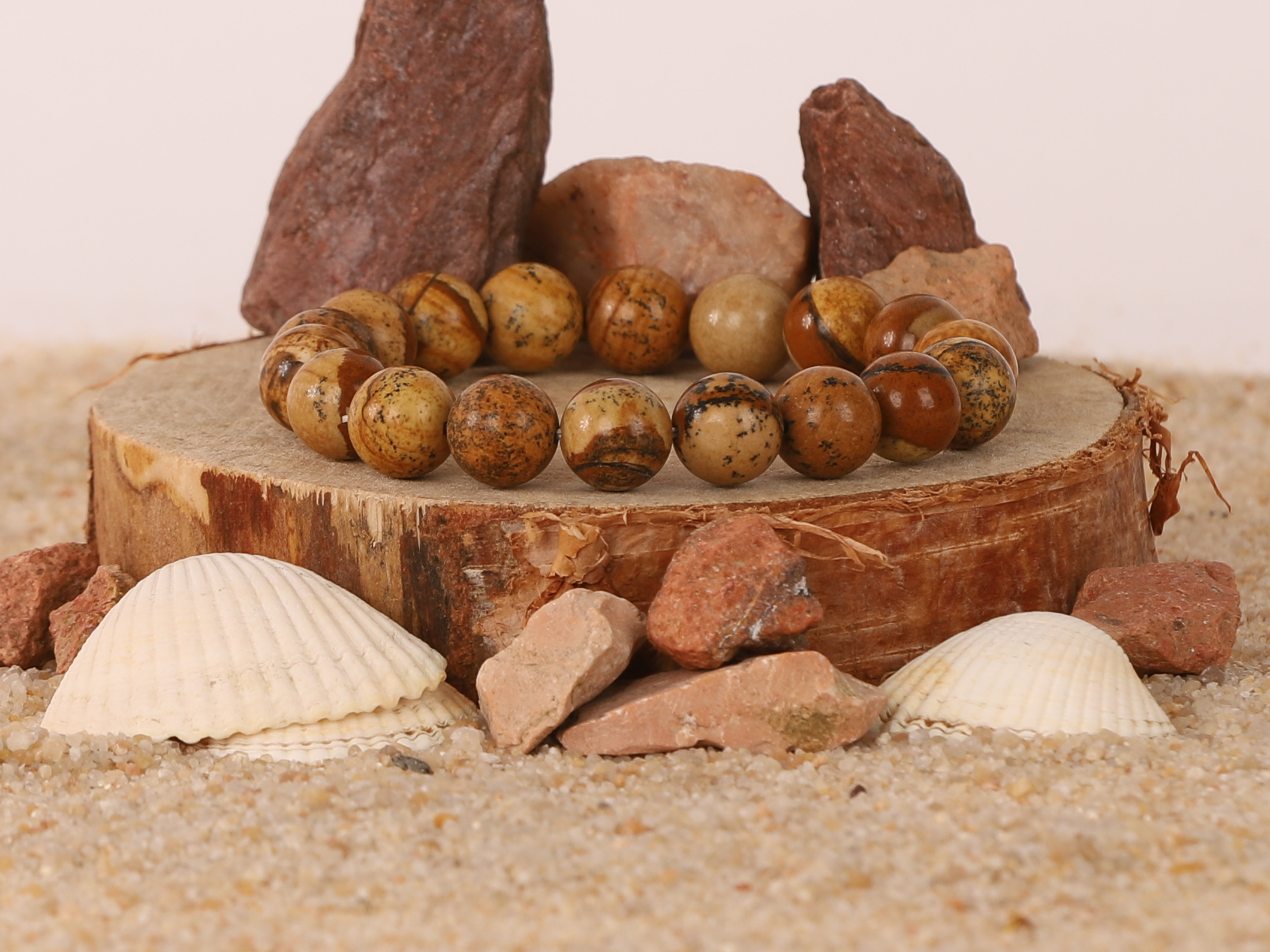 Ce bracelet en Jaspe paysage de qualité supérieure, d’un beige clair apaisant, fortifie le corps et l’esprit. Il soulage les troubles digestifs, favorise la reconnexion à soi et protège des énergies négatives, apportant un équilibre précieux au quotidien.