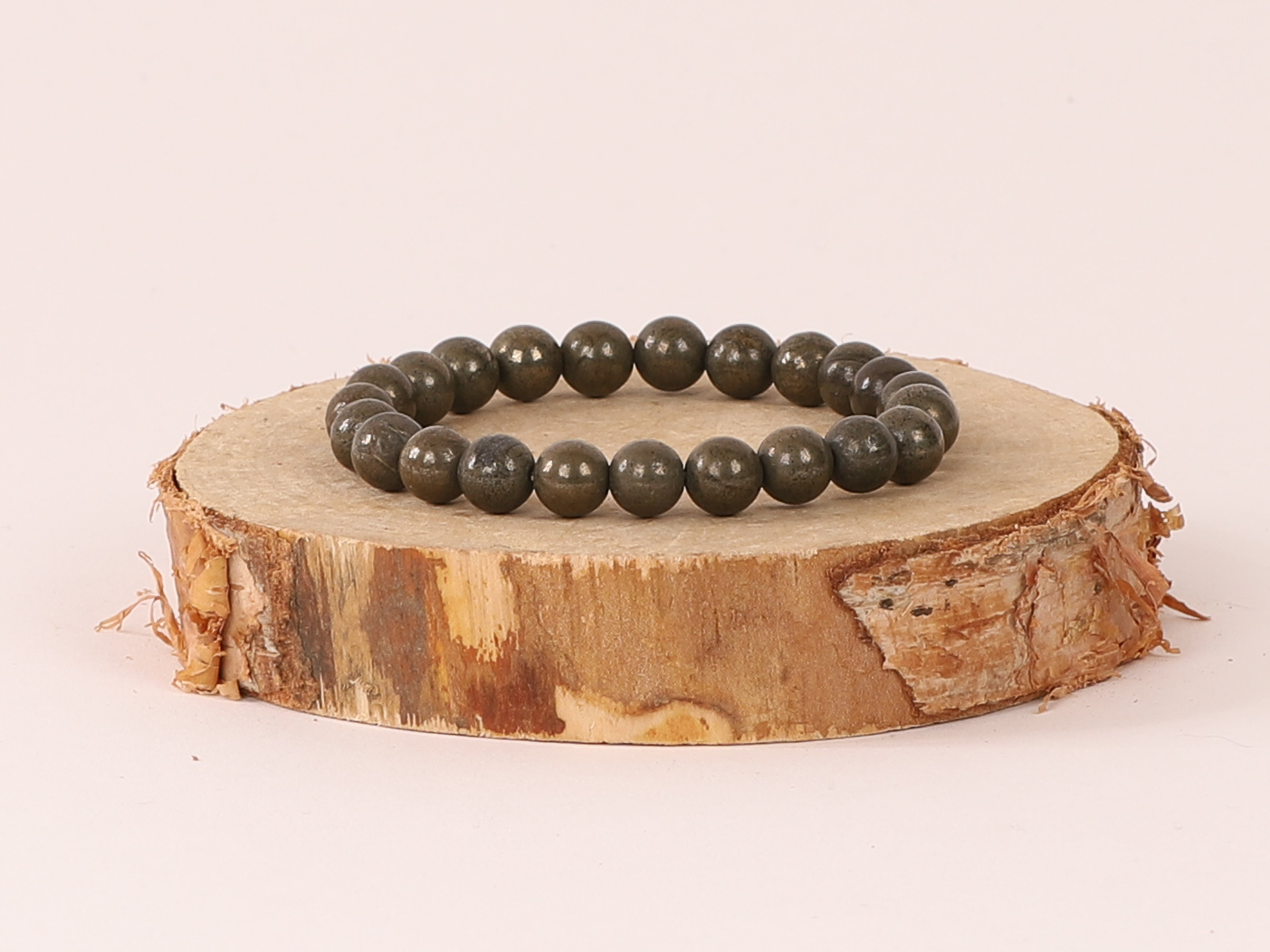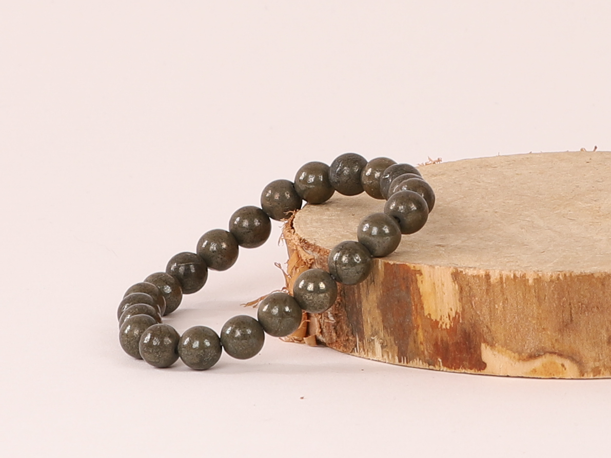 Ce bracelet en Pyrite de qualité supérieure, aux reflets dorés métalliques, est idéal pour renforcer la force intérieure et la protection. Cette pierre aide à repousser les énergies négatives et à stimuler la confiance en soi, offrant ainsi un profond sentiment de sécurité et de bien-être.
