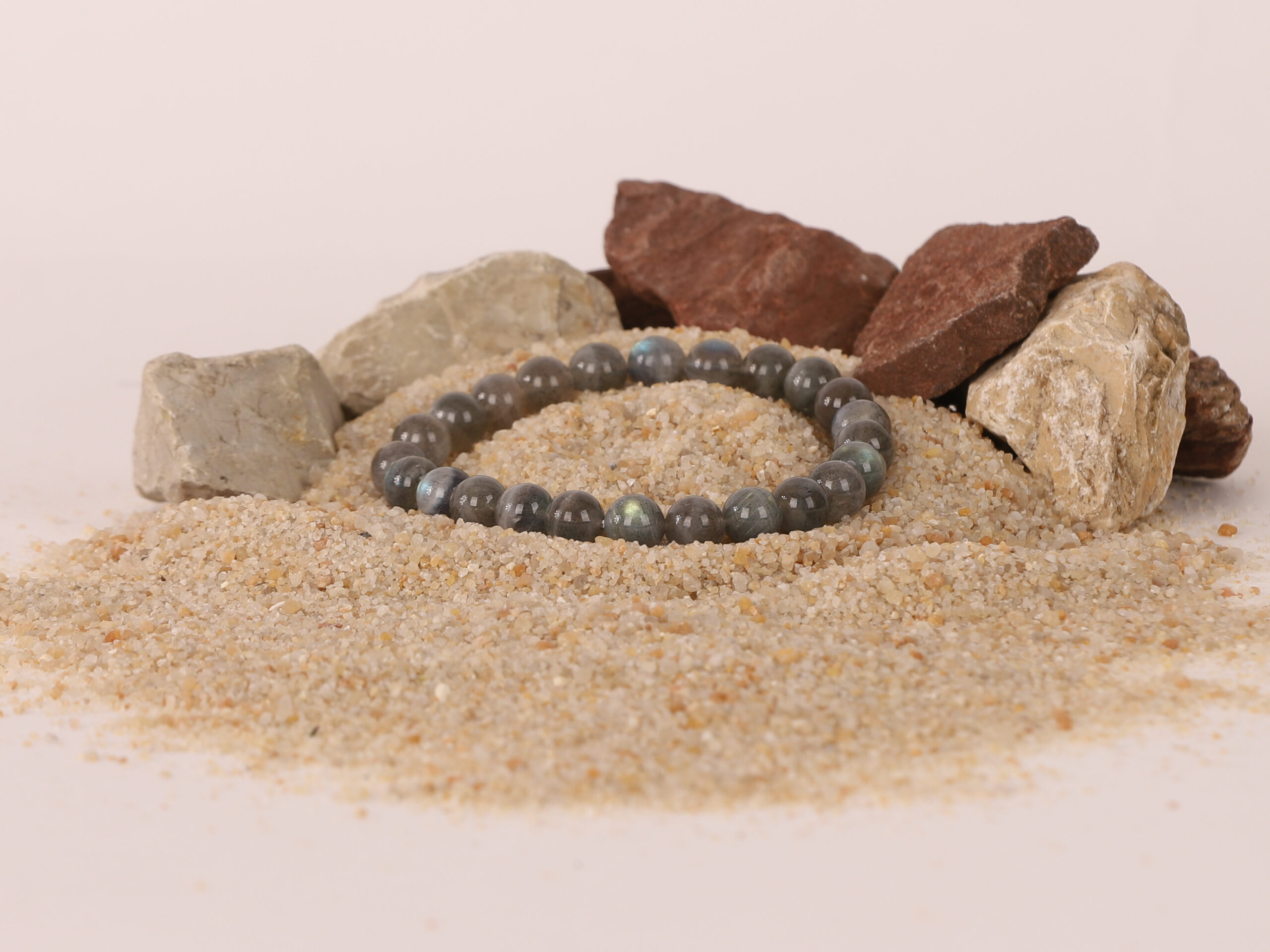 Ce bracelet en Labradorite, composé de pierres de 8mm et mesurant environ 18cm est empreint de légendes. Dans les régions nordiques, certains mythes racontent que les aurores boréales seraient apparues après qu’un guerrier inuit ait frappé une pierre de labradorite avec sa lance. Les labradorites symbolisent des rayons d’aurores boréales emprisonnés dans la roche. Cette pierre jouerait un rôle essentiel, renfermant l’âme de nos ancêtres. Aujourd’hui, elle est encore considérée comme une puissante pierre de protection et de guérison, un trésor prisé par de nombreux thérapeutes.