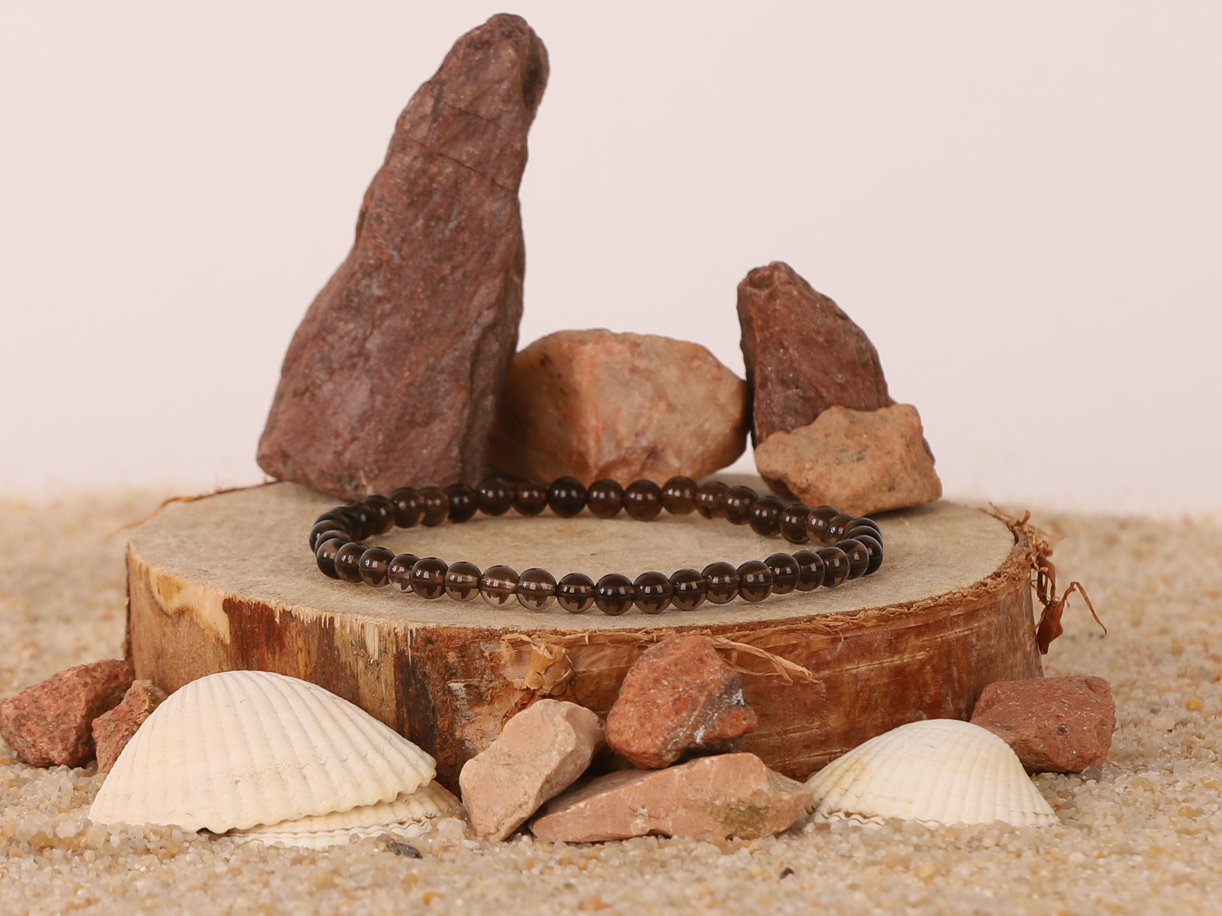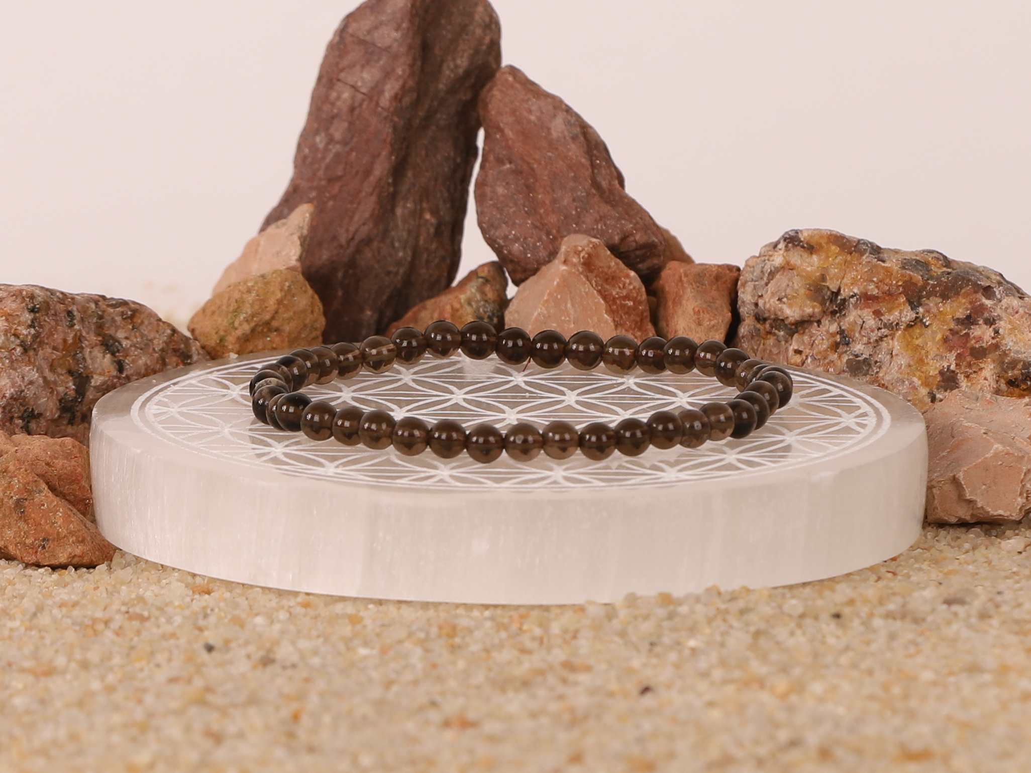 Bracelet Quartz Fumé ‘A’ perles 4mm